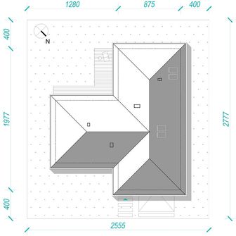 Graficzne opracowanie rzutów poglądowych widocznych na karcie projektu zostało wykonane przez Extradom.pl. Prezentowane przez Extradom.pl wizualizacje wykonane zostały przez autora projektu i należy poczytywać je jedynie za przykład i propozycję wykończenia, wizję architektoniczną autora projektu. Ostateczne wykończenie budynku może nastąpić na wiele sposobów. Szczegółowe rozwiązania zastosowane w oferowanej dokumentacji - w tym również ilość, lokalizacje i wygląd okien, drzwi, kominów - mogą w niewielkim stopniu różnić się od prezentowanej wizualizacji budynku.