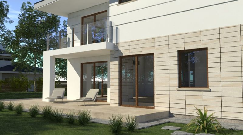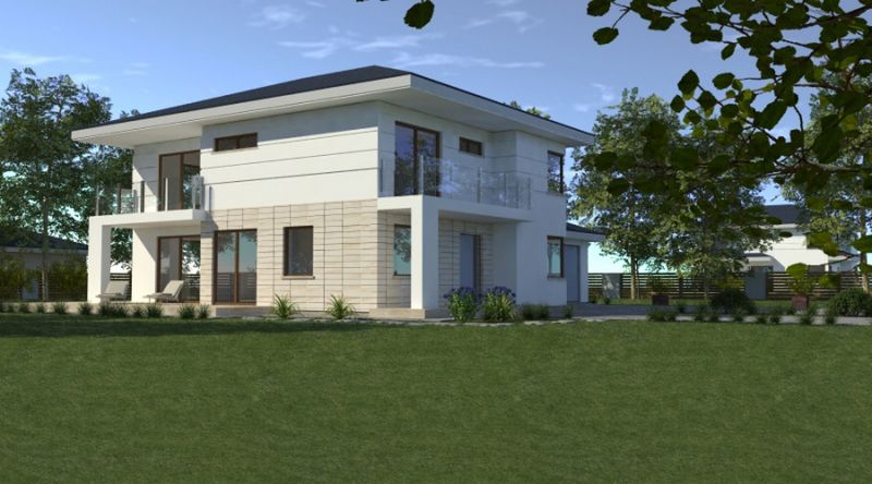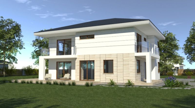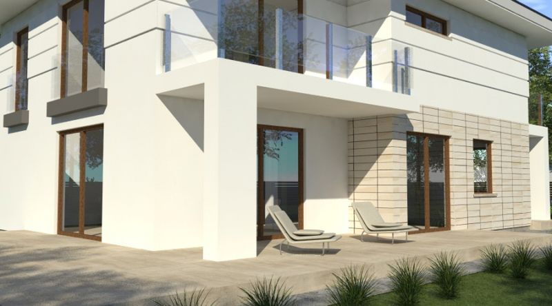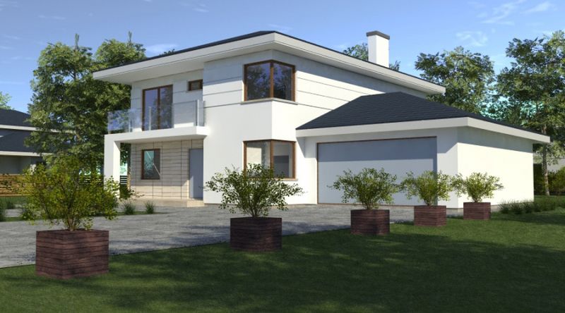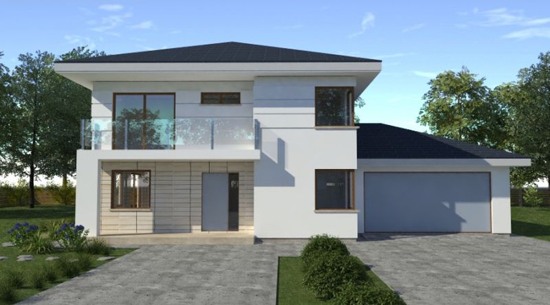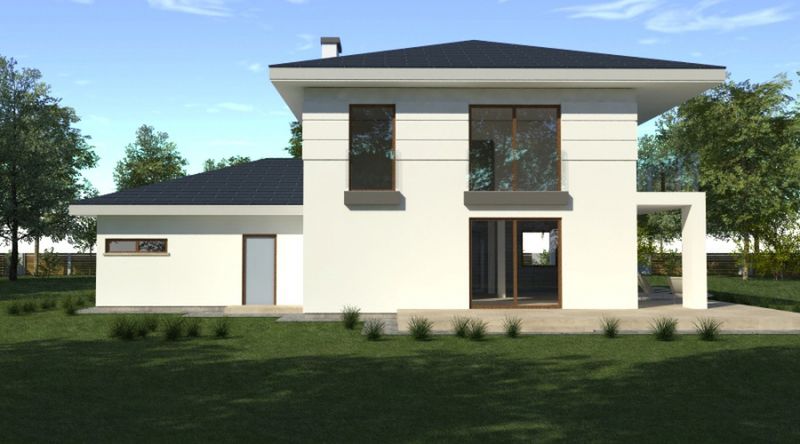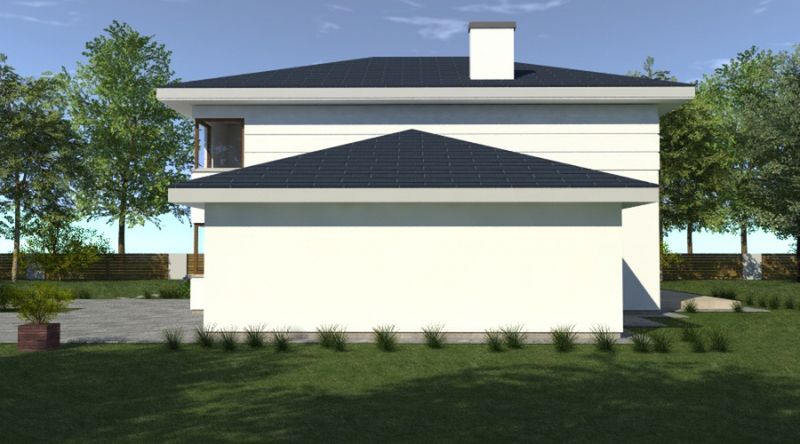 Graficzne opracowanie rzutów poglądowych widocznych na karcie projektu zostało wykonane przez Extradom.pl. Prezentowane przez Extradom.pl wizualizacje wykonane zostały przez autora projektu i należy poczytywać je jedynie za przykład i propozycję wykończenia, wizję architektoniczną autora projektu. Ostateczne wykończenie budynku może nastąpić na wiele sposobów. Szczegółowe rozwiązania zastosowane w oferowanej dokumentacji - w tym również ilość, lokalizacje i wygląd okien, drzwi, kominów - mogą w niewielkim stopniu różnić się od prezentowanej wizualizacji budynku.