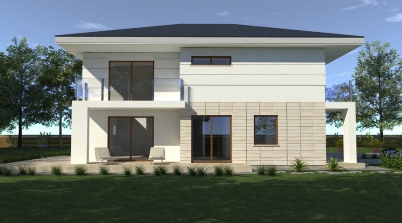 Propozycje materiałowe: Ściany: beton komórkowy, ceramika, silikaty Strop: żelbetowy Dach: dachówka, blachodachówka, blacha Instalacja grzewcza: gaz/paliwo stałe, pompa ciepła, panele fotowoltaiczne.