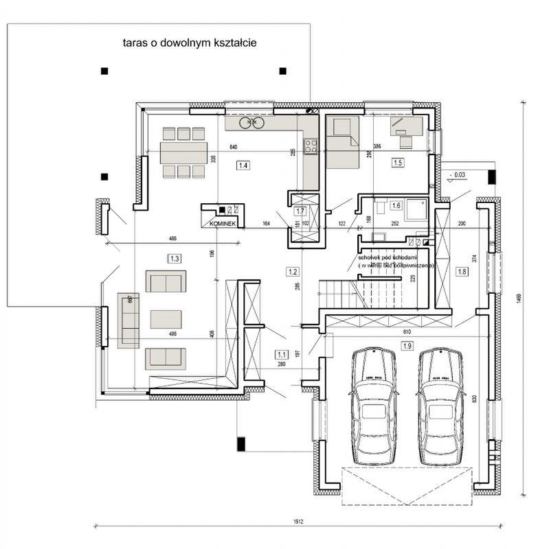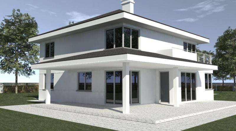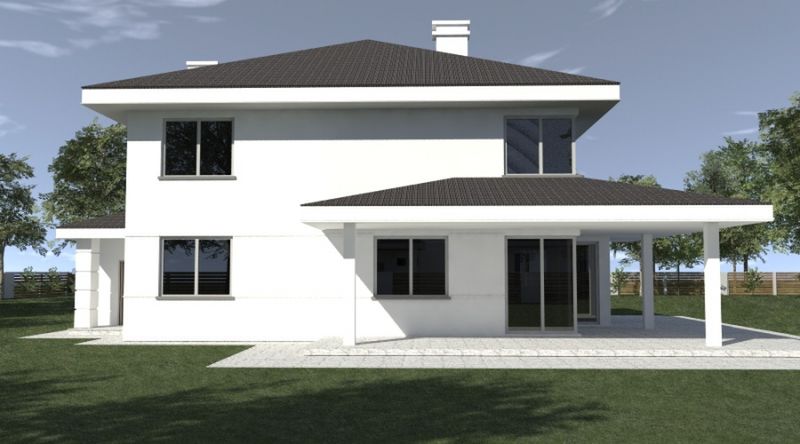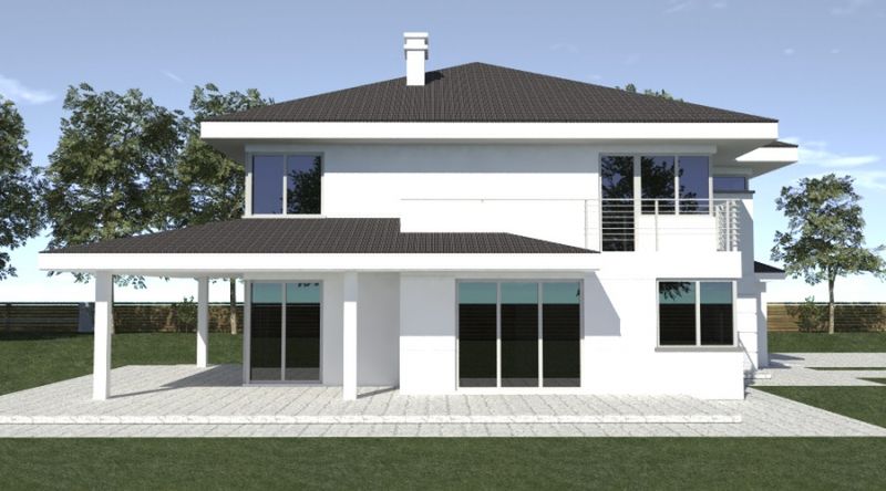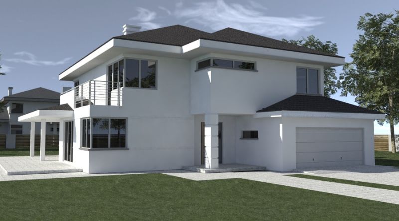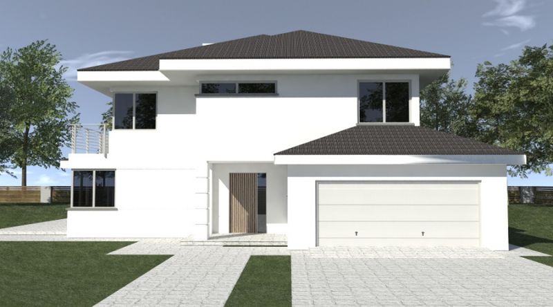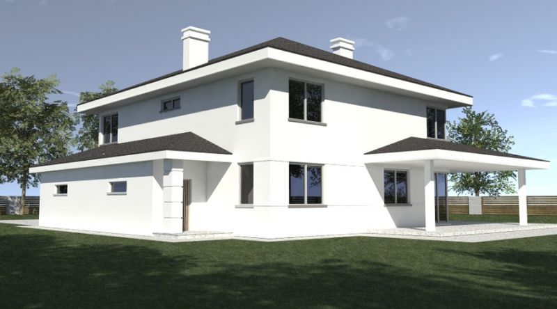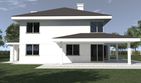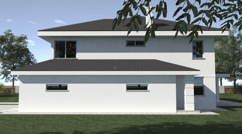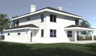 Graficzne opracowanie rzutów poglądowych widocznych na karcie projektu zostało wykonane przez Extradom.pl. Prezentowane przez Extradom.pl wizualizacje wykonane zostały przez autora projektu i należy poczytywać je jedynie za przykład i propozycję wykończenia, wizję architektoniczną autora projektu. Ostateczne wykończenie budynku może nastąpić na wiele sposobów. Szczegółowe rozwiązania zastosowane w oferowanej dokumentacji - w tym również ilość, lokalizacje i wygląd okien, drzwi, kominów - mogą w niewielkim stopniu różnić się od prezentowanej wizualizacji budynku.