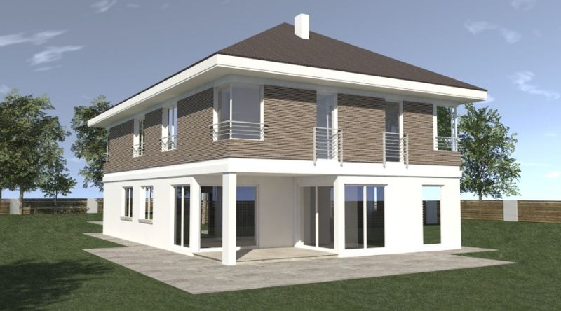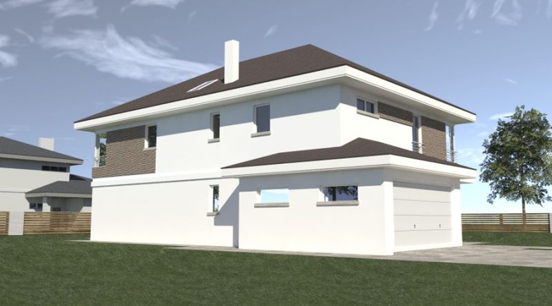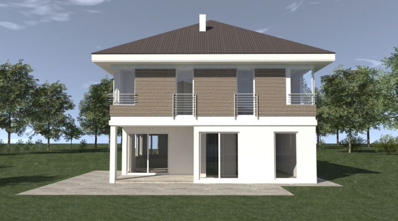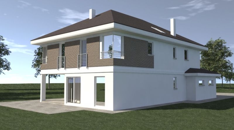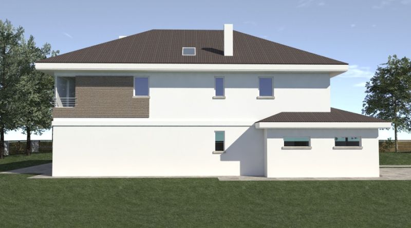 Graficzne opracowanie rzutów poglądowych widocznych na karcie projektu zostało wykonane przez Extradom.pl. Prezentowane przez Extradom.pl wizualizacje wykonane zostały przez autora projektu i należy poczytywać je jedynie za przykład i propozycję wykończenia, wizję architektoniczną autora projektu. Ostateczne wykończenie budynku może nastąpić na wiele sposobów. Szczegółowe rozwiązania zastosowane w oferowanej dokumentacji - w tym również ilość, lokalizacje i wygląd okien, drzwi, kominów - mogą w niewielkim stopniu różnić się od prezentowanej wizualizacji budynku.