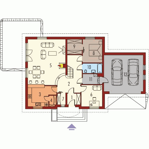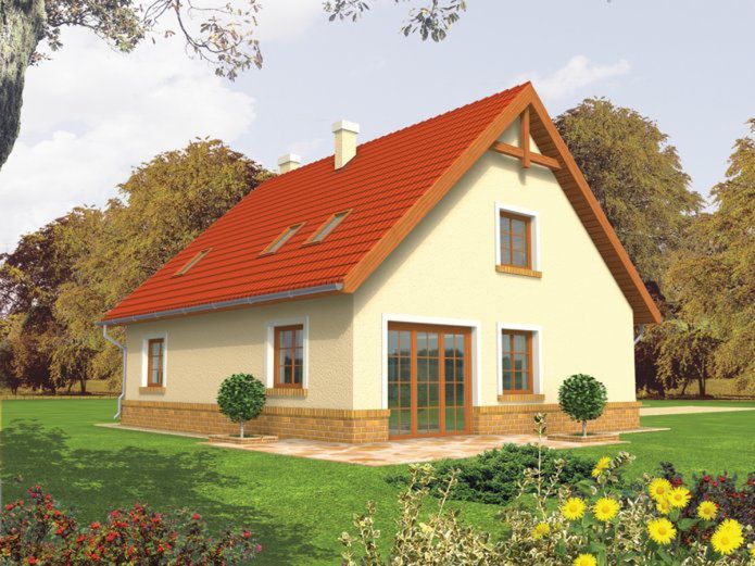 Graficzne opracowanie rzutów poglądowych widocznych na karcie projektu zostało wykonane przez Extradom.pl. Prezentowane przez Extradom.pl wizualizacje wykonane zostały przez autora projektu i należy poczytywać je jedynie za przykład i propozycję wykończenia, wizję architektoniczną autora projektu. Ostateczne wykończenie budynku może nastąpić na wiele sposobów. Szczegółowe rozwiązania zastosowane w oferowanej dokumentacji - w tym również ilość, lokalizacje i wygląd okien, drzwi, kominów - mogą w niewielkim stopniu różnić się od prezentowanej wizualizacji budynku.