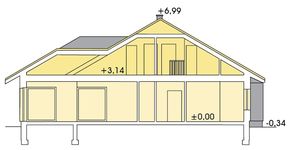 Graficzne opracowanie rzutów poglądowych widocznych na karcie projektu zostało wykonane przez Extradom.pl. Prezentowane przez Extradom.pl wizualizacje wykonane zostały przez autora projektu i należy poczytywać je jedynie za przykład i propozycję wykończenia, wizję architektoniczną autora projektu. Ostateczne wykończenie budynku może nastąpić na wiele sposobów. Szczegółowe rozwiązania zastosowane w oferowanej dokumentacji - w tym również ilość, lokalizacje i wygląd okien, drzwi, kominów - mogą w niewielkim stopniu różnić się od prezentowanej wizualizacji budynku.