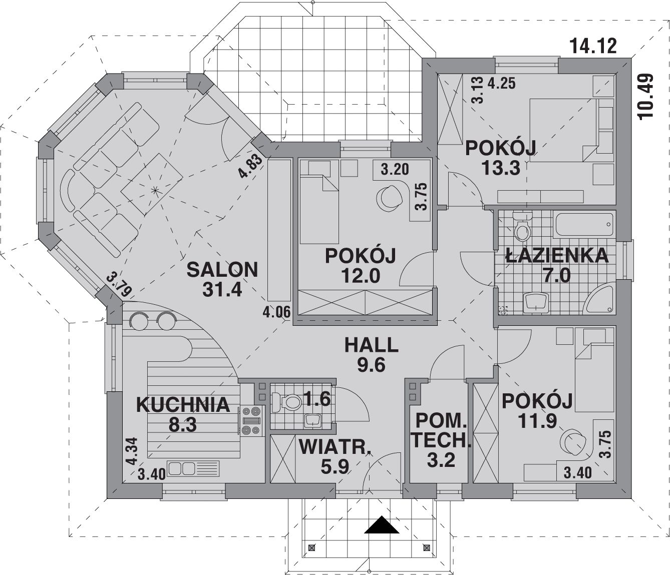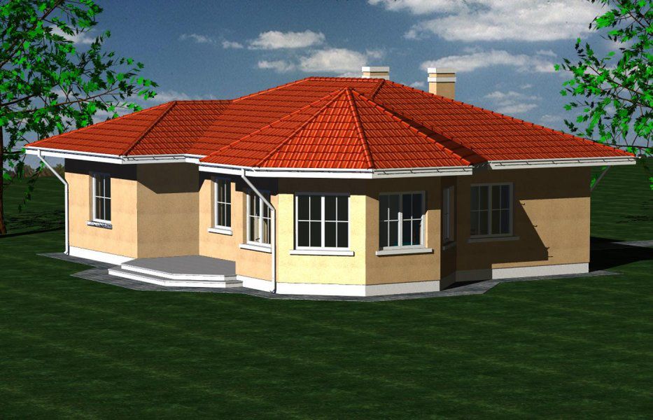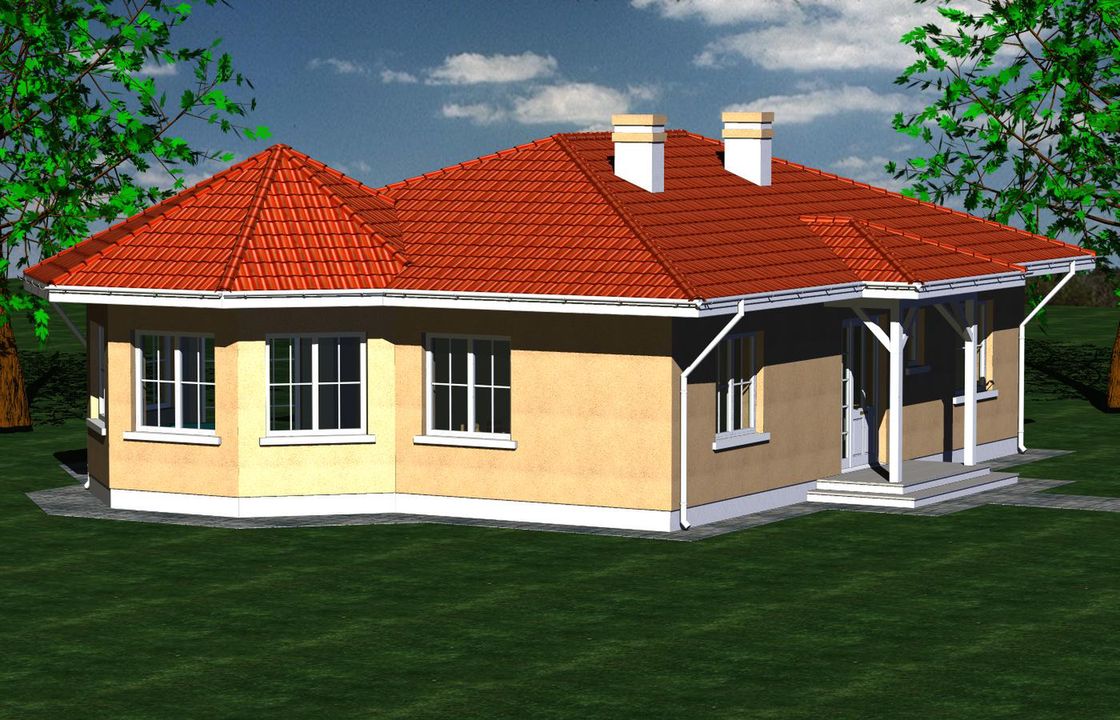 Graficzne opracowanie rzutów poglądowych widocznych na karcie projektu zostało wykonane przez Extradom.pl. Prezentowane przez Extradom.pl wizualizacje wykonane zostały przez autora projektu i należy poczytywać je jedynie za przykład i propozycję wykończenia, wizję architektoniczną autora projektu. Ostateczne wykończenie budynku może nastąpić na wiele sposobów. Szczegółowe rozwiązania zastosowane w oferowanej dokumentacji - w tym również ilość, lokalizacje i wygląd okien, drzwi, kominów - mogą w niewielkim stopniu różnić się od prezentowanej wizualizacji budynku.
