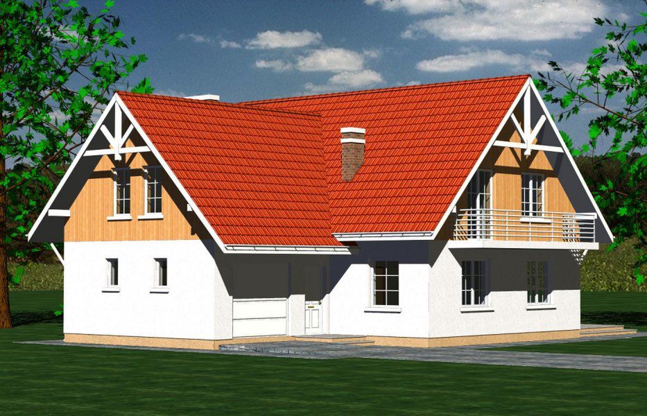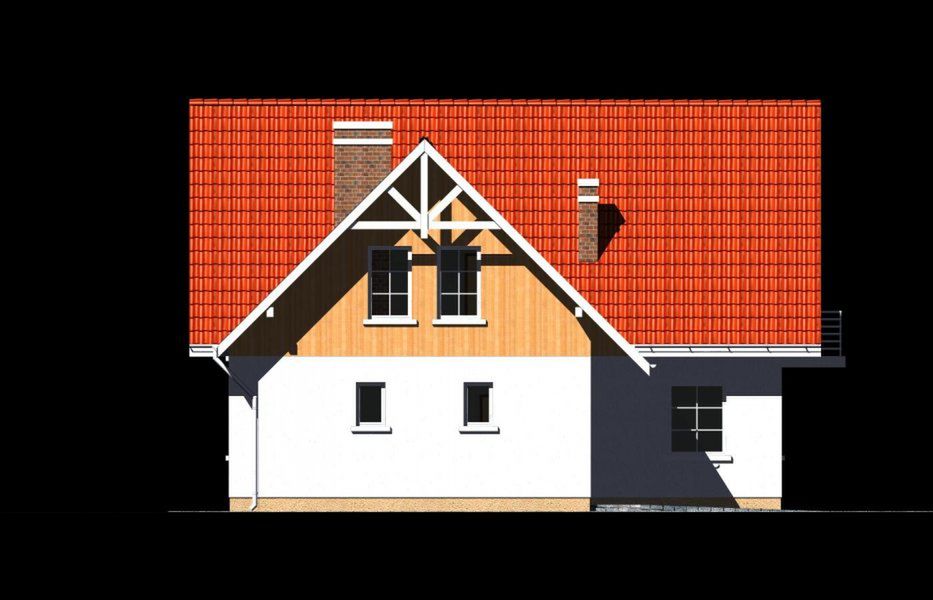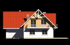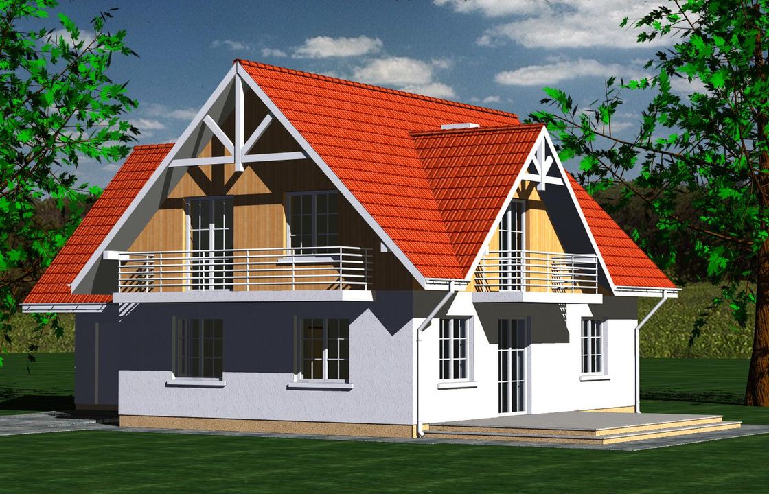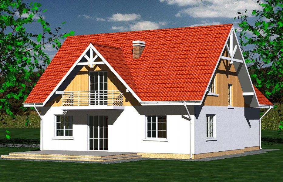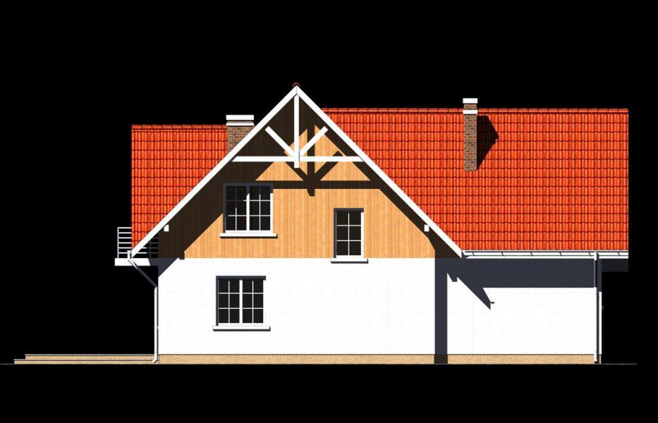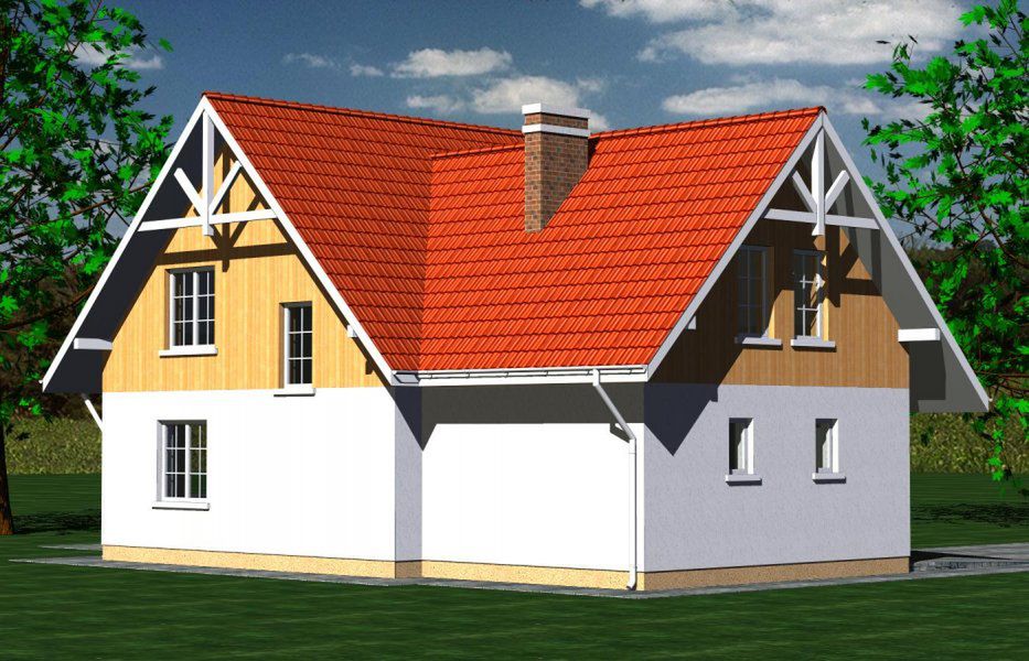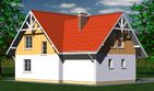 Graficzne opracowanie rzutów poglądowych widocznych na karcie projektu zostało wykonane przez Extradom.pl. Prezentowane przez Extradom.pl wizualizacje wykonane zostały przez autora projektu i należy poczytywać je jedynie za przykład i propozycję wykończenia, wizję architektoniczną autora projektu. Ostateczne wykończenie budynku może nastąpić na wiele sposobów. Szczegółowe rozwiązania zastosowane w oferowanej dokumentacji - w tym również ilość, lokalizacje i wygląd okien, drzwi, kominów - mogą w niewielkim stopniu różnić się od prezentowanej wizualizacji budynku.