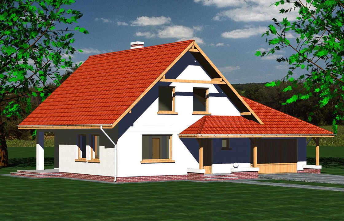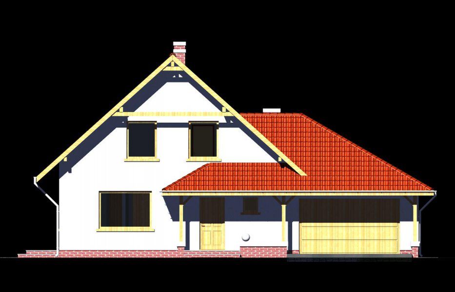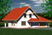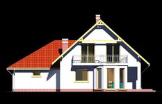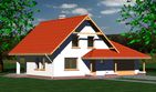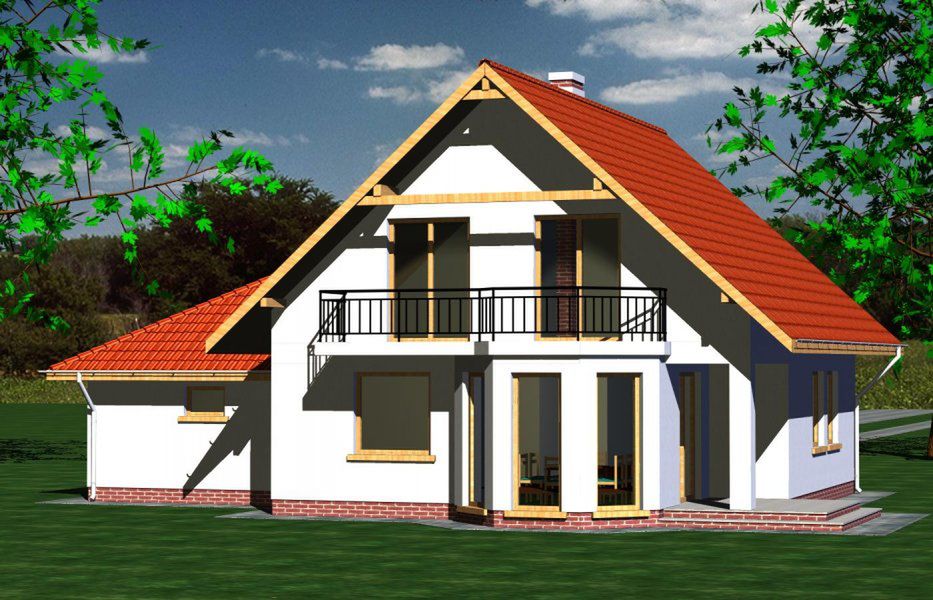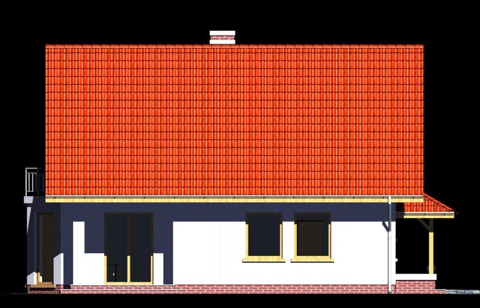 Graficzne opracowanie rzutów poglądowych widocznych na karcie projektu zostało wykonane przez Extradom.pl. Prezentowane przez Extradom.pl wizualizacje wykonane zostały przez autora projektu i należy poczytywać je jedynie za przykład i propozycję wykończenia, wizję architektoniczną autora projektu. Ostateczne wykończenie budynku może nastąpić na wiele sposobów. Szczegółowe rozwiązania zastosowane w oferowanej dokumentacji - w tym również ilość, lokalizacje i wygląd okien, drzwi, kominów - mogą w niewielkim stopniu różnić się od prezentowanej wizualizacji budynku.