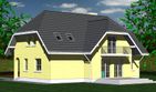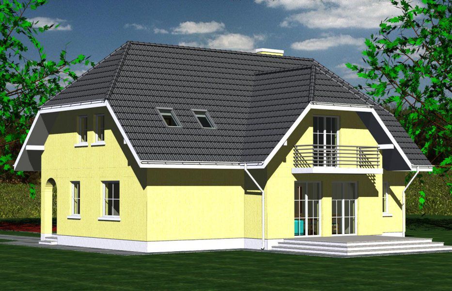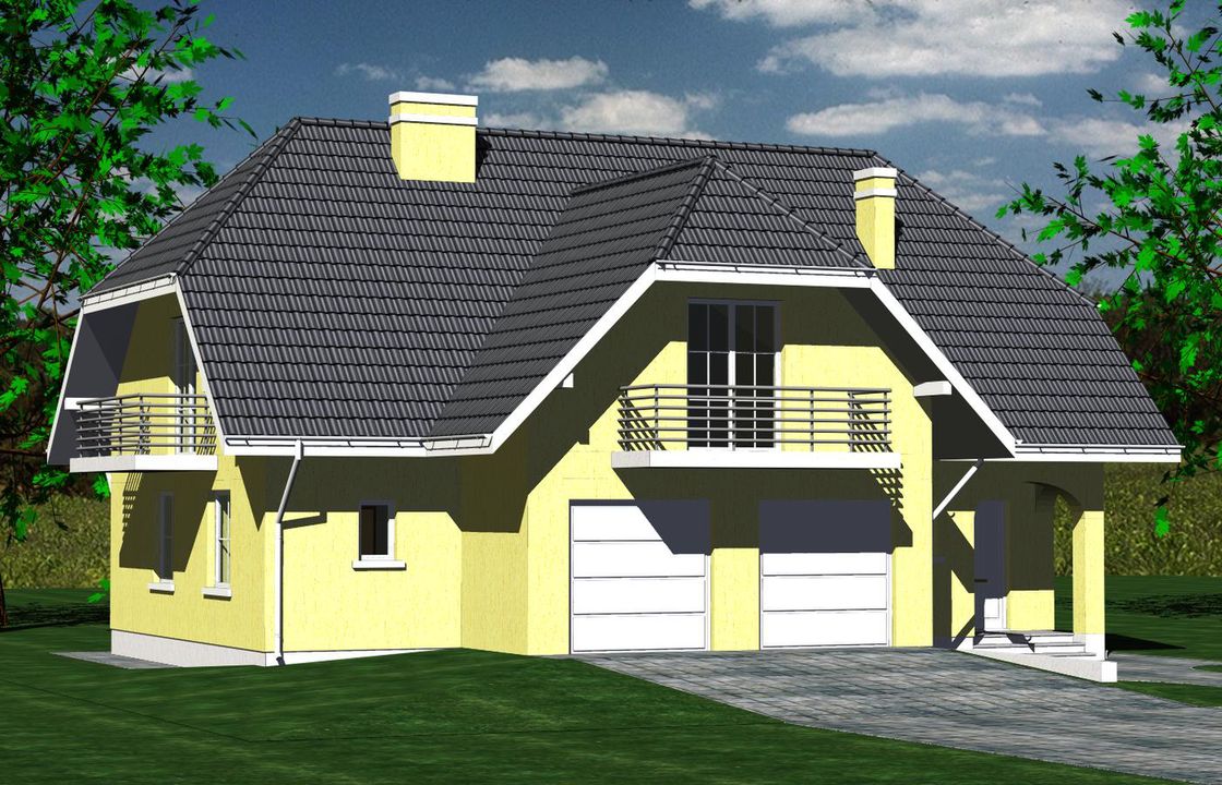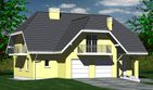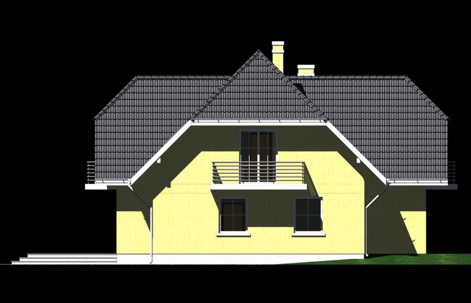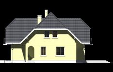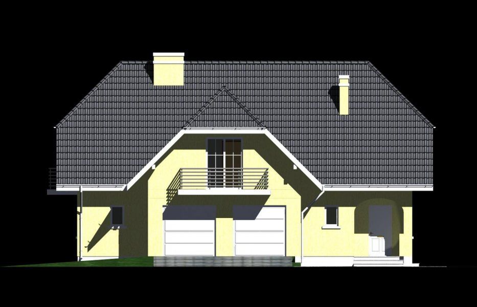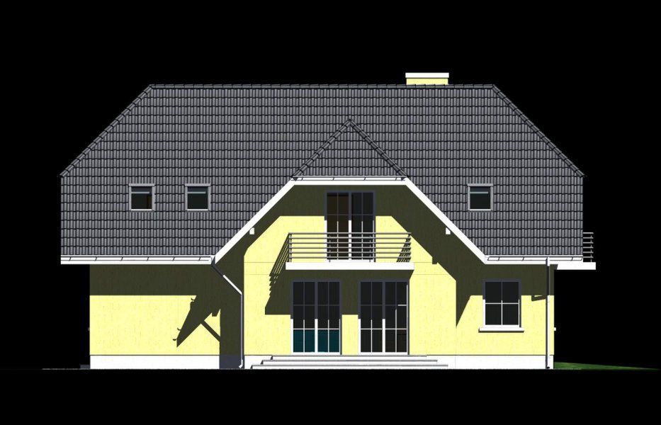 Graficzne opracowanie rzutów poglądowych widocznych na karcie projektu zostało wykonane przez Extradom.pl. Prezentowane przez Extradom.pl wizualizacje wykonane zostały przez autora projektu i należy poczytywać je jedynie za przykład i propozycję wykończenia, wizję architektoniczną autora projektu. Ostateczne wykończenie budynku może nastąpić na wiele sposobów. Szczegółowe rozwiązania zastosowane w oferowanej dokumentacji - w tym również ilość, lokalizacje i wygląd okien, drzwi, kominów - mogą w niewielkim stopniu różnić się od prezentowanej wizualizacji budynku.