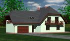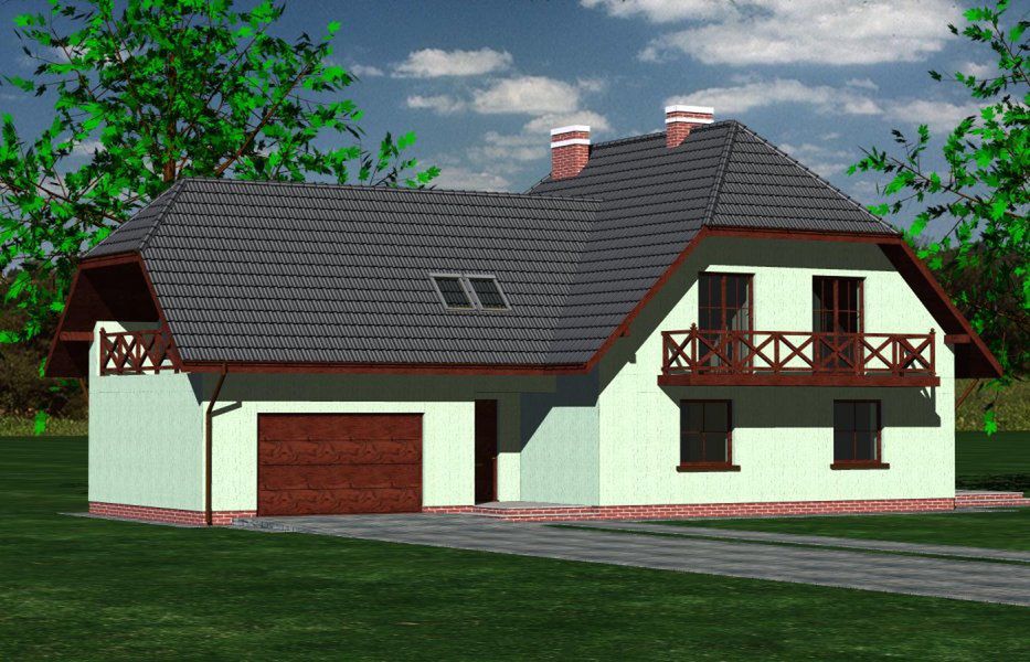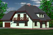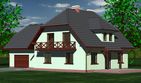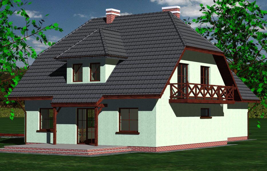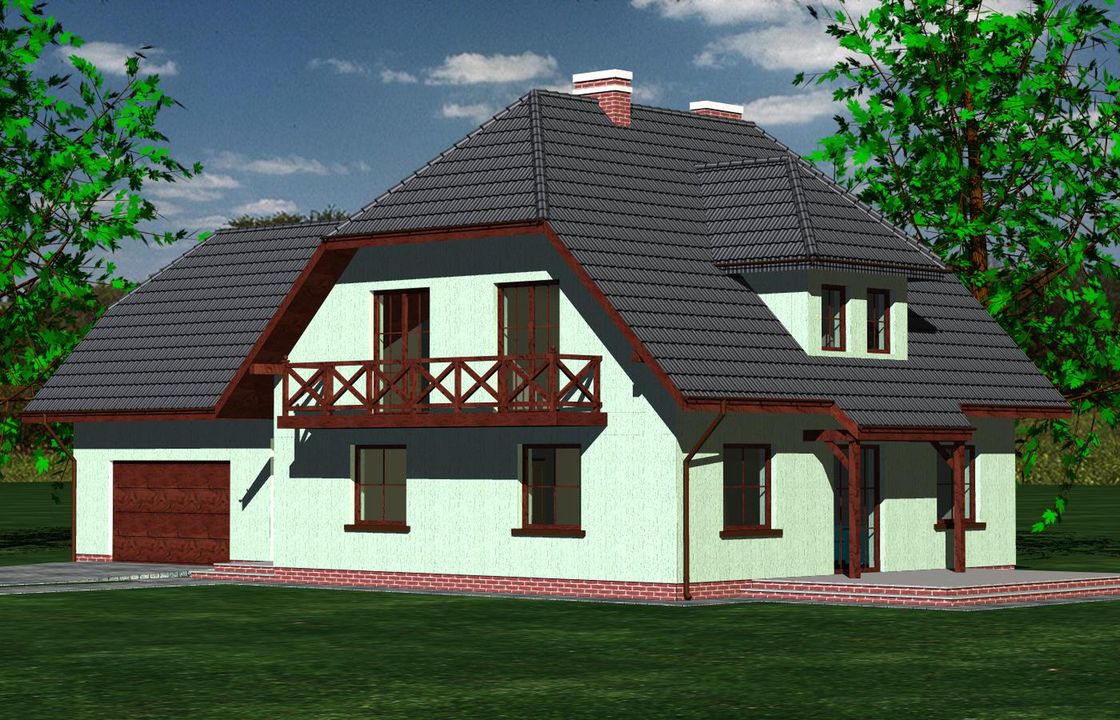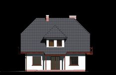 Graficzne opracowanie rzutów poglądowych widocznych na karcie projektu zostało wykonane przez Extradom.pl. Prezentowane przez Extradom.pl wizualizacje wykonane zostały przez autora projektu i należy poczytywać je jedynie za przykład i propozycję wykończenia, wizję architektoniczną autora projektu. Ostateczne wykończenie budynku może nastąpić na wiele sposobów. Szczegółowe rozwiązania zastosowane w oferowanej dokumentacji - w tym również ilość, lokalizacje i wygląd okien, drzwi, kominów - mogą w niewielkim stopniu różnić się od prezentowanej wizualizacji budynku.