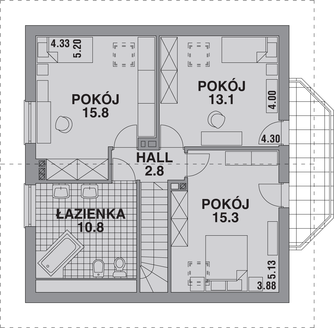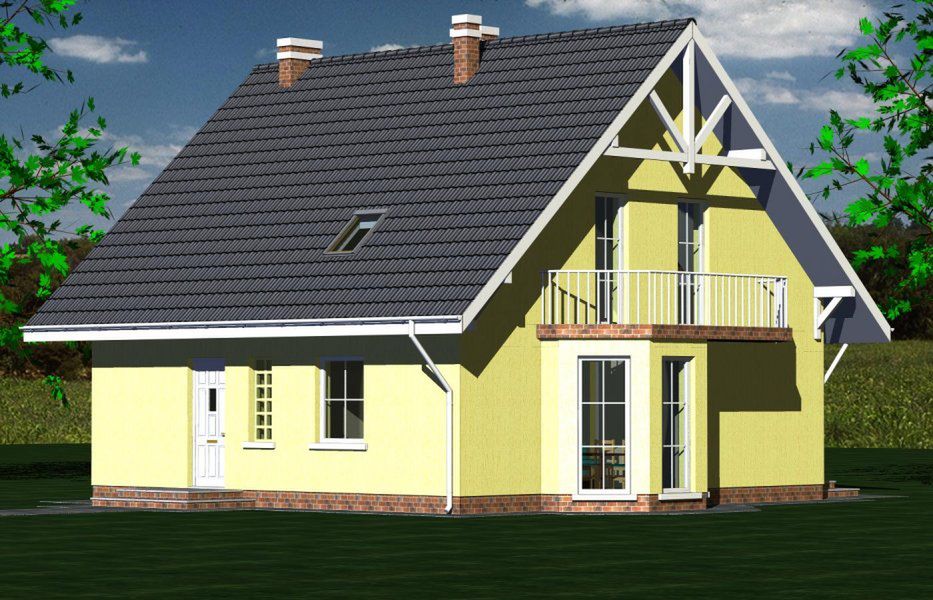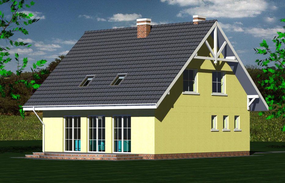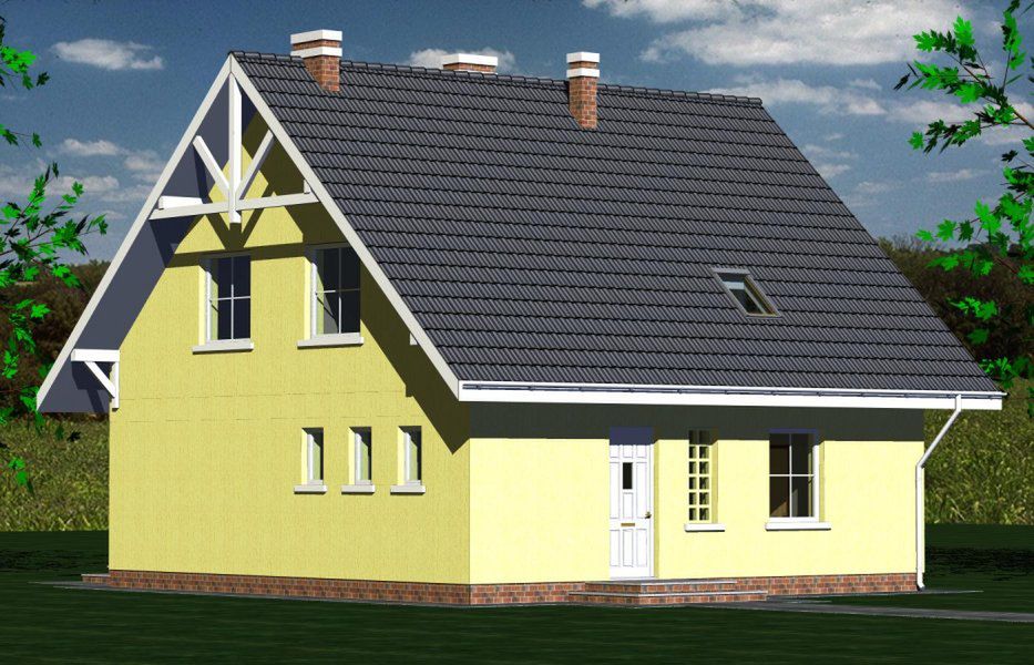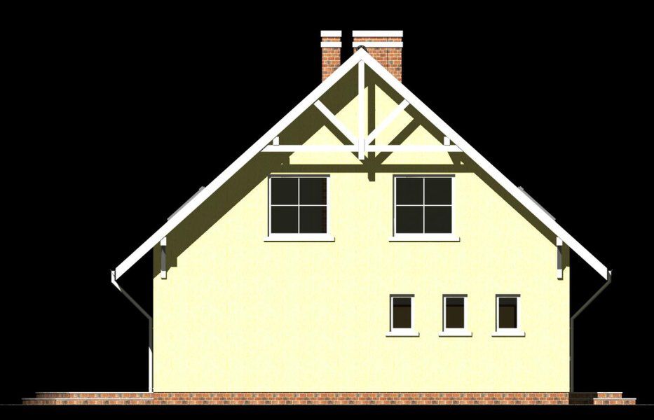 Graficzne opracowanie rzutów poglądowych widocznych na karcie projektu zostało wykonane przez Extradom.pl. Prezentowane przez Extradom.pl wizualizacje wykonane zostały przez autora projektu i należy poczytywać je jedynie za przykład i propozycję wykończenia, wizję architektoniczną autora projektu. Ostateczne wykończenie budynku może nastąpić na wiele sposobów. Szczegółowe rozwiązania zastosowane w oferowanej dokumentacji - w tym również ilość, lokalizacje i wygląd okien, drzwi, kominów - mogą w niewielkim stopniu różnić się od prezentowanej wizualizacji budynku.