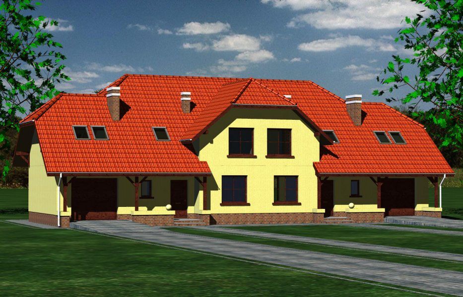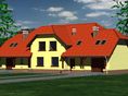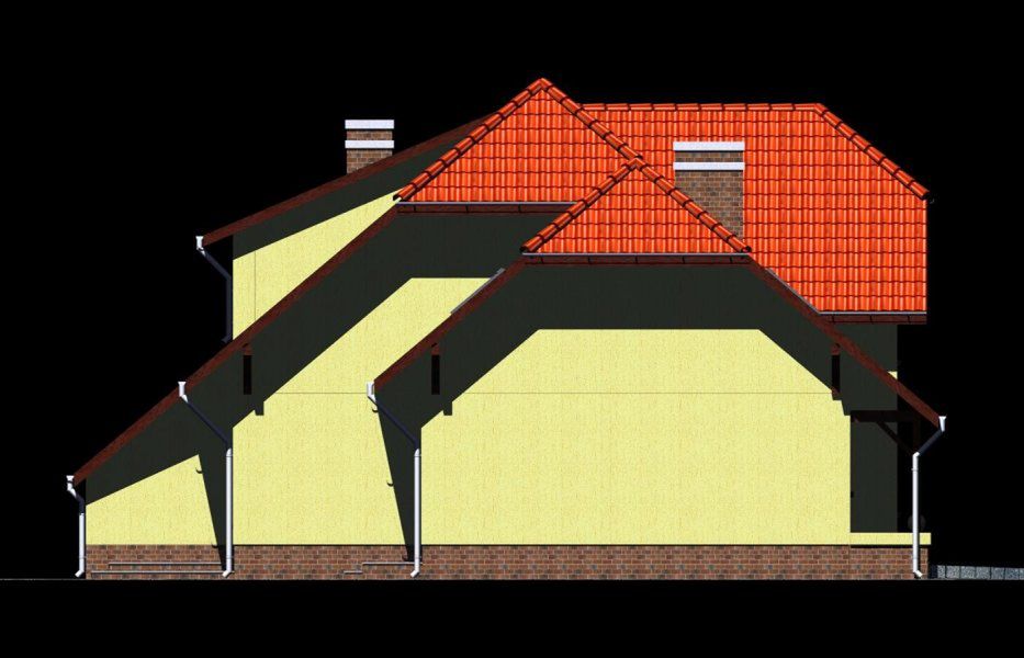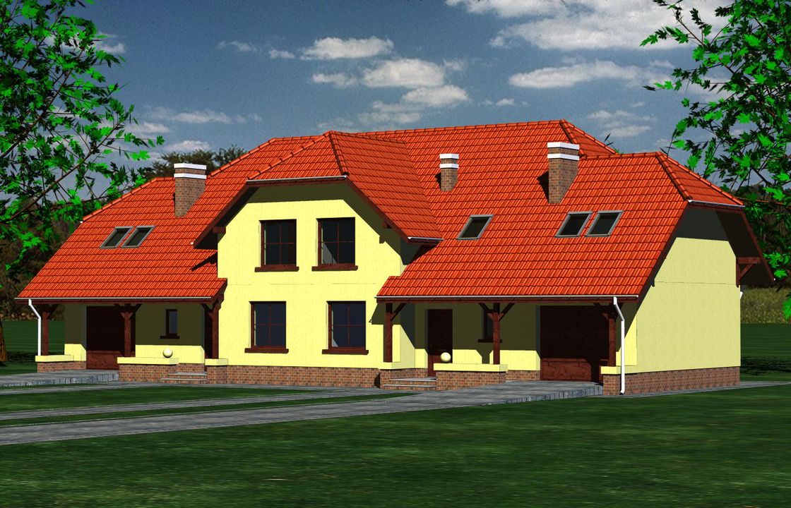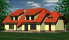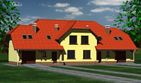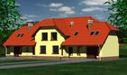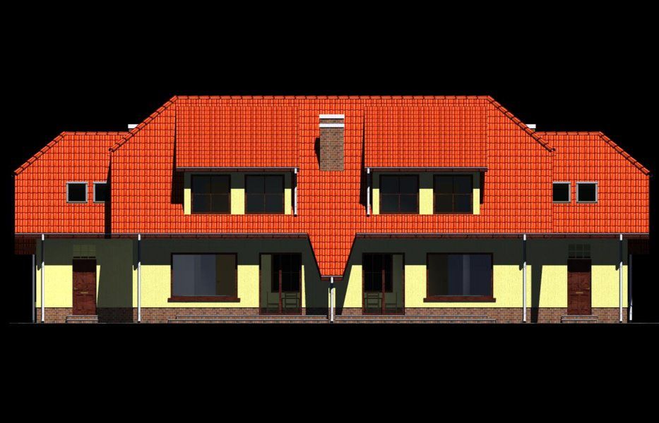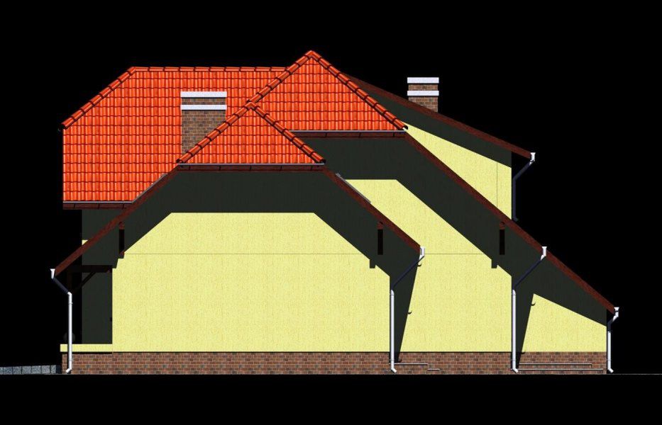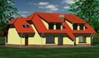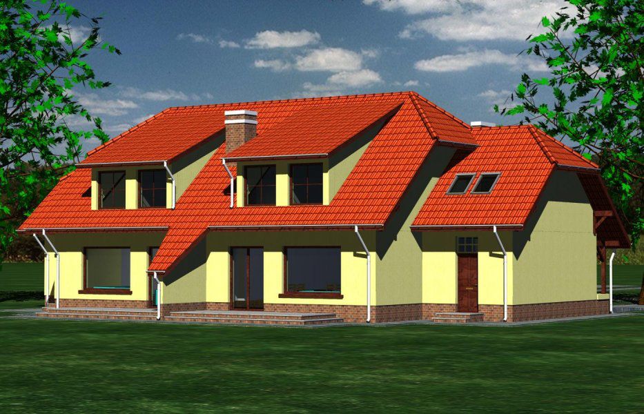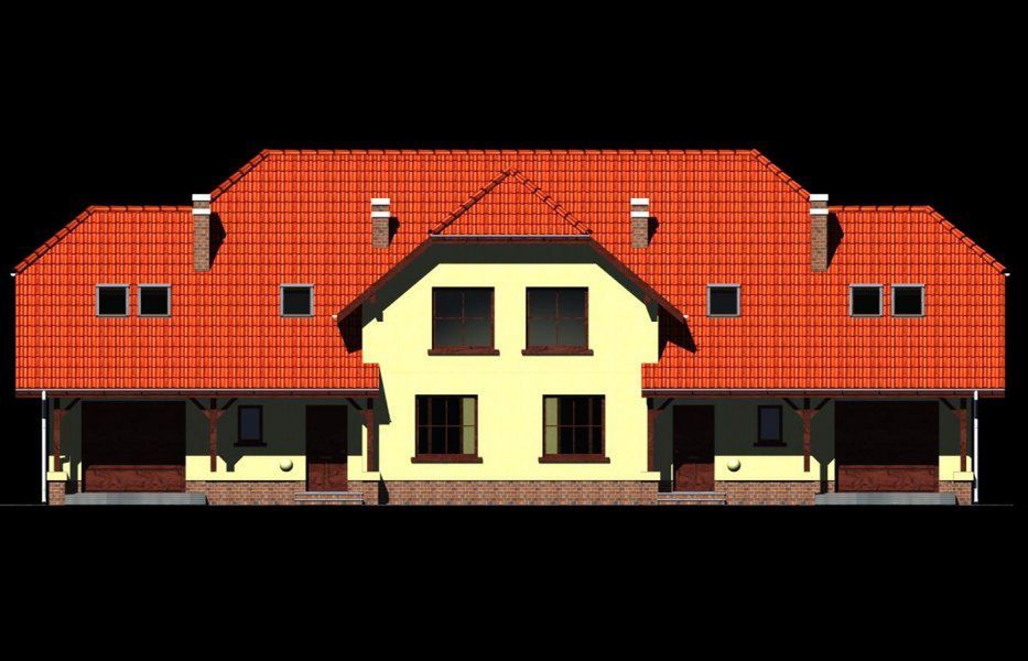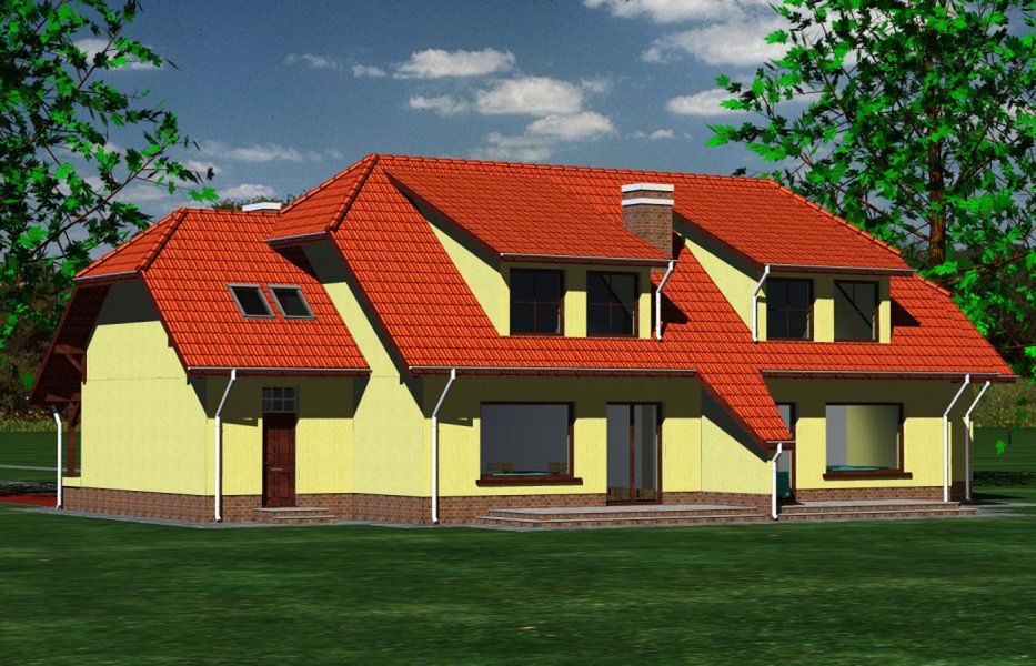 Graficzne opracowanie rzutów poglądowych widocznych na karcie projektu zostało wykonane przez Extradom.pl. Prezentowane przez Extradom.pl wizualizacje wykonane zostały przez autora projektu i należy poczytywać je jedynie za przykład i propozycję wykończenia, wizję architektoniczną autora projektu. Ostateczne wykończenie budynku może nastąpić na wiele sposobów. Szczegółowe rozwiązania zastosowane w oferowanej dokumentacji - w tym również ilość, lokalizacje i wygląd okien, drzwi, kominów - mogą w niewielkim stopniu różnić się od prezentowanej wizualizacji budynku.