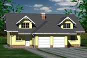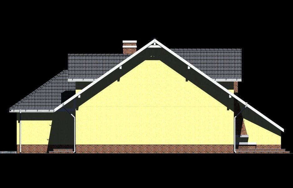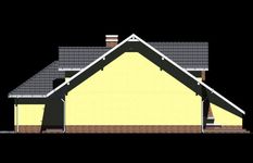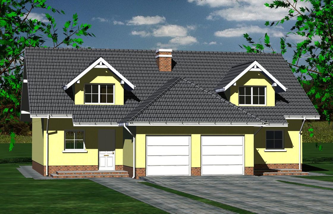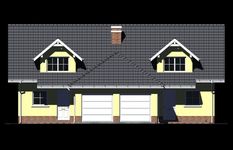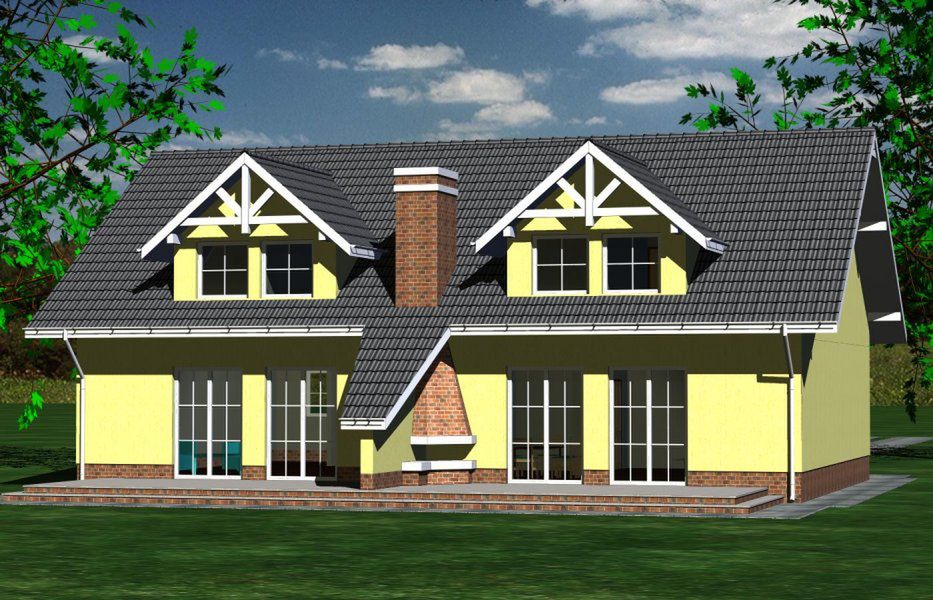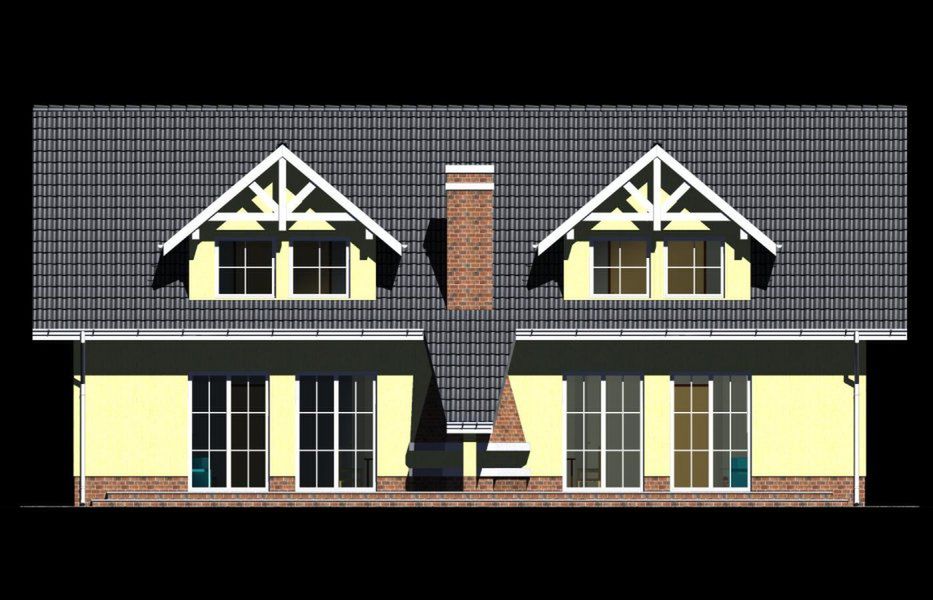 Graficzne opracowanie rzutów poglądowych widocznych na karcie projektu zostało wykonane przez Extradom.pl. Prezentowane przez Extradom.pl wizualizacje wykonane zostały przez autora projektu i należy poczytywać je jedynie za przykład i propozycję wykończenia, wizję architektoniczną autora projektu. Ostateczne wykończenie budynku może nastąpić na wiele sposobów. Szczegółowe rozwiązania zastosowane w oferowanej dokumentacji - w tym również ilość, lokalizacje i wygląd okien, drzwi, kominów - mogą w niewielkim stopniu różnić się od prezentowanej wizualizacji budynku.