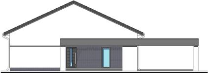 Ściany: bloczek z betonu komórkowego klasy M600 o grubości 24cm. Styropian EPS 70 o grubości 20cm, np. firmy Swisspor. Strop: drewniana, w postaci dolnych pasów wiązarów, ocieplenie z wełny mineralnej 30cm, sufit podwieszony z płyt g-k, gładź gipsowa. Nad wiatą zaprojektowano stropodach płaski, na który składają się płyta żelbetowa gr.20cm i warstwa izolacji. Dach: dwuspadowy, więźba drewniana prefabrykowana, nachylenie 25st., dachówka ceramiczna. Elewacje: tynk cienkowarstwowy, cokół z płytek klinkierowych. Elementy dekoracyjne elewacji ściennej z płytek klinkierowych. Ogrzewanie: W projekcie zastosowano powietrzną pompę ciepła. Istnieje możliwość zamiany pompy ciepła na inne paliwo na etapie adaptacji. Ogrzewanie podłogowe: Ogrzewanie podłogowe zaprojektowano w takich pomieszczeniach jak: korytarze, łazienki, kuchnia, salon, sypialnie. Wentylacja: W projekcie zaprojektowano wentylację mechaniczną-rekuperację.