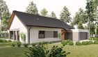 Graficzne opracowanie rzutów poglądowych widocznych na karcie projektu zostało wykonane przez Extradom.pl. Prezentowane przez Extradom.pl wizualizacje wykonane zostały przez autora projektu i należy poczytywać je jedynie za przykład i propozycję wykończenia, wizję architektoniczną autora projektu. Ostateczne wykończenie budynku może nastąpić na wiele sposobów. Szczegółowe rozwiązania zastosowane w oferowanej dokumentacji - w tym również ilość, lokalizacje i wygląd okien, drzwi, kominów - mogą w niewielkim stopniu różnić się od prezentowanej wizualizacji budynku.
