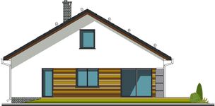 Ściany: bloczek z betonu komórkowego klasy M600 o grubości 24cm. Styropian EPS 70 o grubości 20cm, np. firmy Swisspor. Strop: strop nad parterem drewniany w postaci dolnych pasów wiązarów, sufit podwieszany na ruszcie aluminiowym z płyt g-k. Dach: dwuspadowy, więźba drewniana prefabrykowana, nachylenie 30st., dachówka ceramiczna. Elewacje: tynk cienkowarstwowy, cokół z płytek klinkierowych. Elementy dekoracyjne elewacji ściennej z paneli drewnianych. Ogrzewanie: W projekcie zastosowano kocioł na paliwo gazowe. Istnieje możliwość zamiany kotła na inne paliwo na etapie adaptacji. Ogrzewanie podłogowe: zaprojektowano w takich pomieszczeniach jak: korytarze, łazienki, kuchnia, salon. Wentylacja: w projekcie zastosowano wentylację mechaniczną - rekuperację. Chcesz wentylację grawitacyjną? Napisz do nas!.