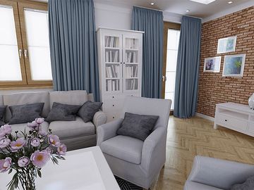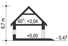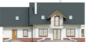 Graficzne opracowanie rzutów poglądowych widocznych na karcie projektu zostało wykonane przez Extradom.pl. Prezentowane przez Extradom.pl wizualizacje wykonane zostały przez autora projektu i należy poczytywać je jedynie za przykład i propozycję wykończenia, wizję architektoniczną autora projektu. Ostateczne wykończenie budynku może nastąpić na wiele sposobów. Szczegółowe rozwiązania zastosowane w oferowanej dokumentacji - w tym również ilość, lokalizacje i wygląd okien, drzwi, kominów - mogą w niewielkim stopniu różnić się od prezentowanej wizualizacji budynku.