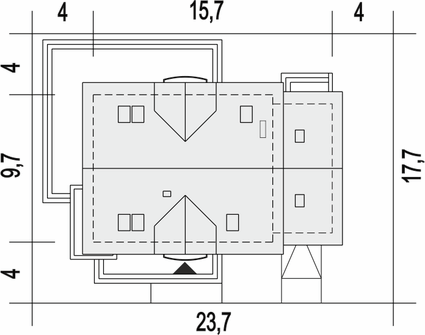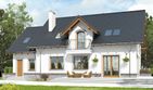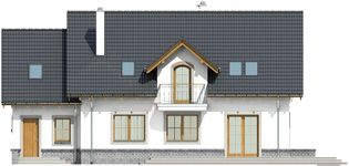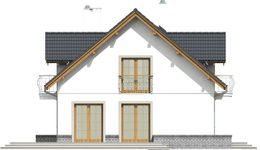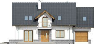 Graficzne opracowanie rzutów poglądowych widocznych na karcie projektu zostało wykonane przez Extradom.pl. Prezentowane przez Extradom.pl wizualizacje wykonane zostały przez autora projektu i należy poczytywać je jedynie za przykład i propozycję wykończenia, wizję architektoniczną autora projektu. Ostateczne wykończenie budynku może nastąpić na wiele sposobów. Szczegółowe rozwiązania zastosowane w oferowanej dokumentacji - w tym również ilość, lokalizacje i wygląd okien, drzwi, kominów - mogą w niewielkim stopniu różnić się od prezentowanej wizualizacji budynku.