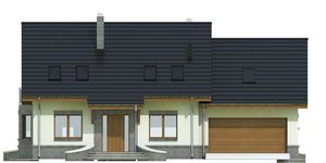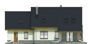 Graficzne opracowanie rzutów poglądowych widocznych na karcie projektu zostało wykonane przez Extradom.pl. Prezentowane przez Extradom.pl wizualizacje wykonane zostały przez autora projektu i należy poczytywać je jedynie za przykład i propozycję wykończenia, wizję architektoniczną autora projektu. Ostateczne wykończenie budynku może nastąpić na wiele sposobów. Szczegółowe rozwiązania zastosowane w oferowanej dokumentacji - w tym również ilość, lokalizacje i wygląd okien, drzwi, kominów - mogą w niewielkim stopniu różnić się od prezentowanej wizualizacji budynku.