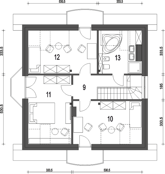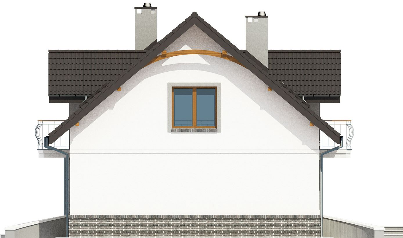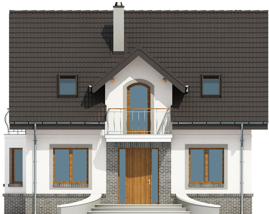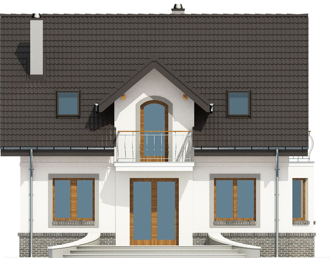 Graficzne opracowanie rzutów poglądowych widocznych na karcie projektu zostało wykonane przez Extradom.pl. Prezentowane przez Extradom.pl wizualizacje wykonane zostały przez autora projektu i należy poczytywać je jedynie za przykład i propozycję wykończenia, wizję architektoniczną autora projektu. Ostateczne wykończenie budynku może nastąpić na wiele sposobów. Szczegółowe rozwiązania zastosowane w oferowanej dokumentacji - w tym również ilość, lokalizacje i wygląd okien, drzwi, kominów - mogą w niewielkim stopniu różnić się od prezentowanej wizualizacji budynku.