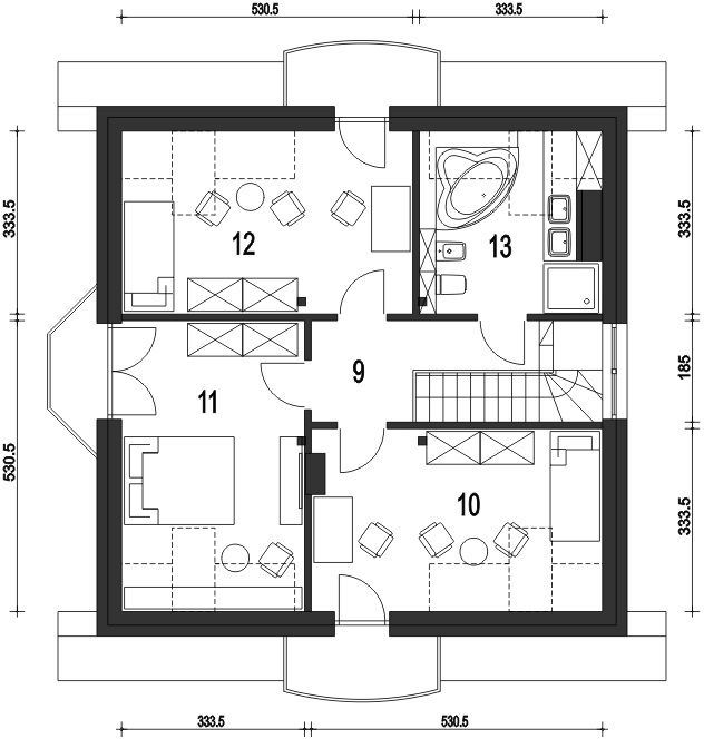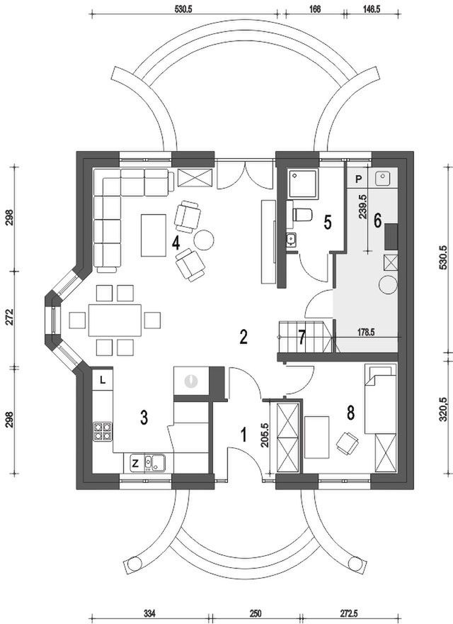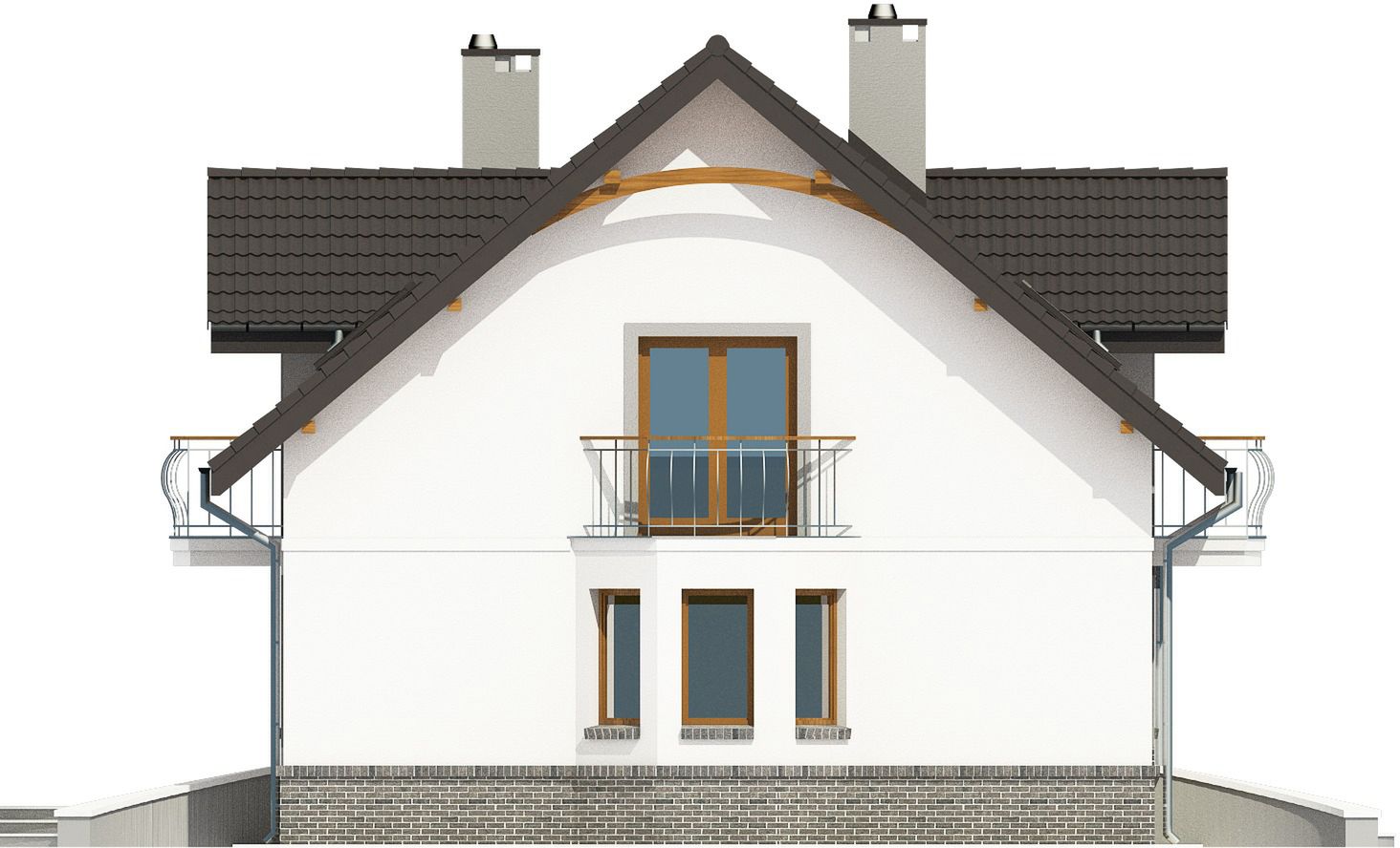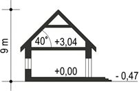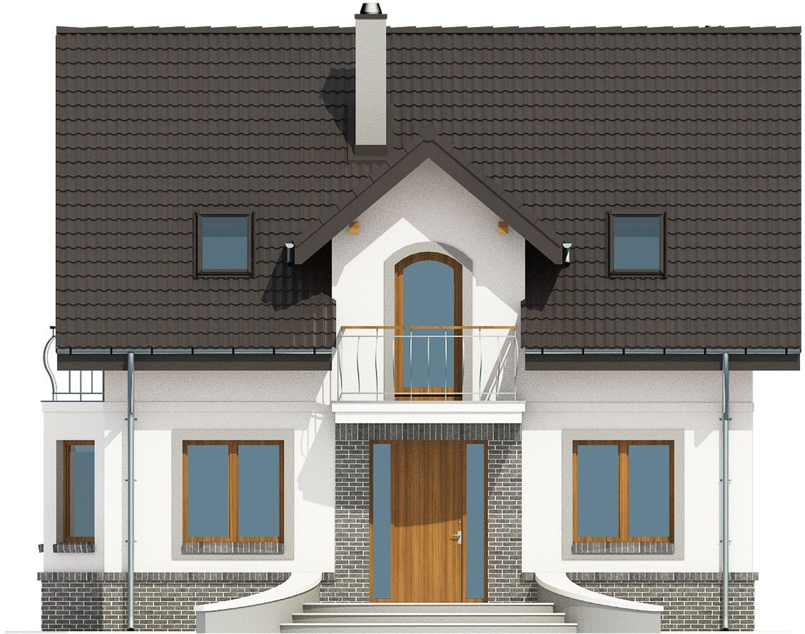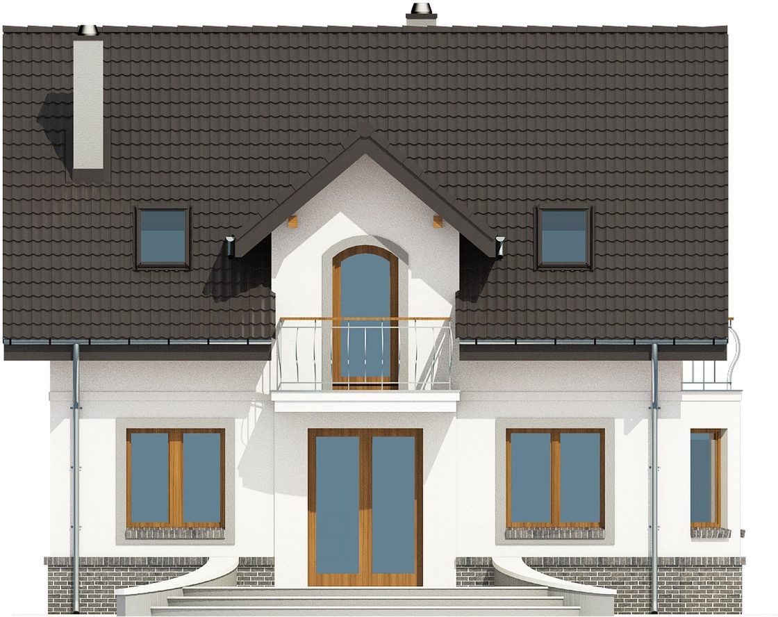 Graficzne opracowanie rzutów poglądowych widocznych na karcie projektu zostało wykonane przez Extradom.pl. Prezentowane przez Extradom.pl wizualizacje wykonane zostały przez autora projektu i należy poczytywać je jedynie za przykład i propozycję wykończenia, wizję architektoniczną autora projektu. Ostateczne wykończenie budynku może nastąpić na wiele sposobów. Szczegółowe rozwiązania zastosowane w oferowanej dokumentacji - w tym również ilość, lokalizacje i wygląd okien, drzwi, kominów - mogą w niewielkim stopniu różnić się od prezentowanej wizualizacji budynku.