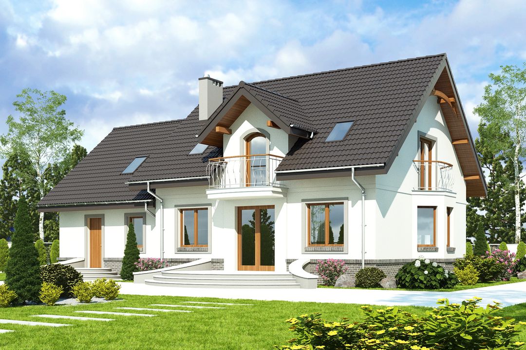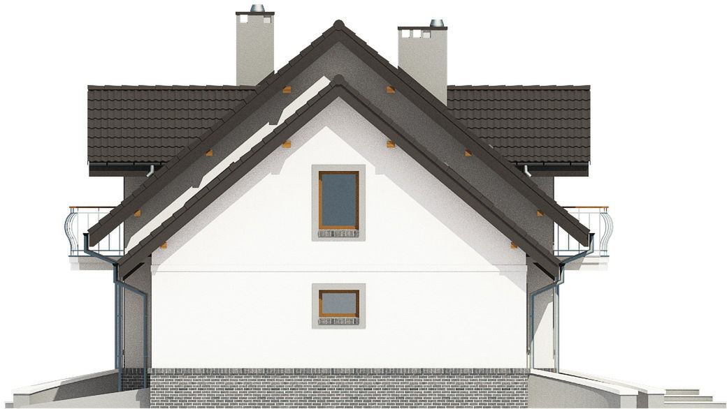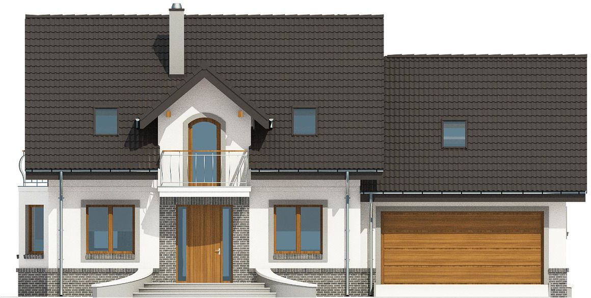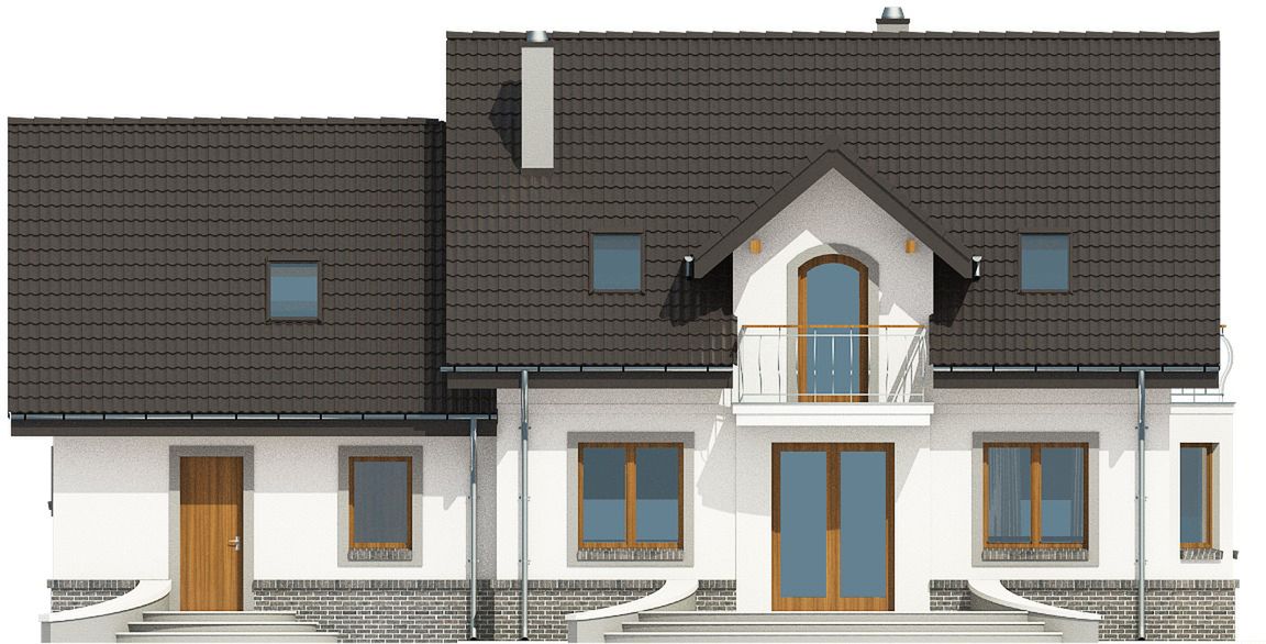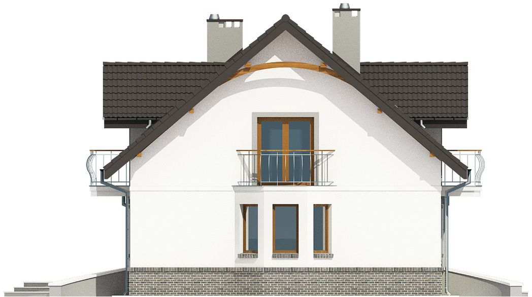 Graficzne opracowanie rzutów poglądowych widocznych na karcie projektu zostało wykonane przez Extradom.pl. Prezentowane przez Extradom.pl wizualizacje wykonane zostały przez autora projektu i należy poczytywać je jedynie za przykład i propozycję wykończenia, wizję architektoniczną autora projektu. Ostateczne wykończenie budynku może nastąpić na wiele sposobów. Szczegółowe rozwiązania zastosowane w oferowanej dokumentacji - w tym również ilość, lokalizacje i wygląd okien, drzwi, kominów - mogą w niewielkim stopniu różnić się od prezentowanej wizualizacji budynku.