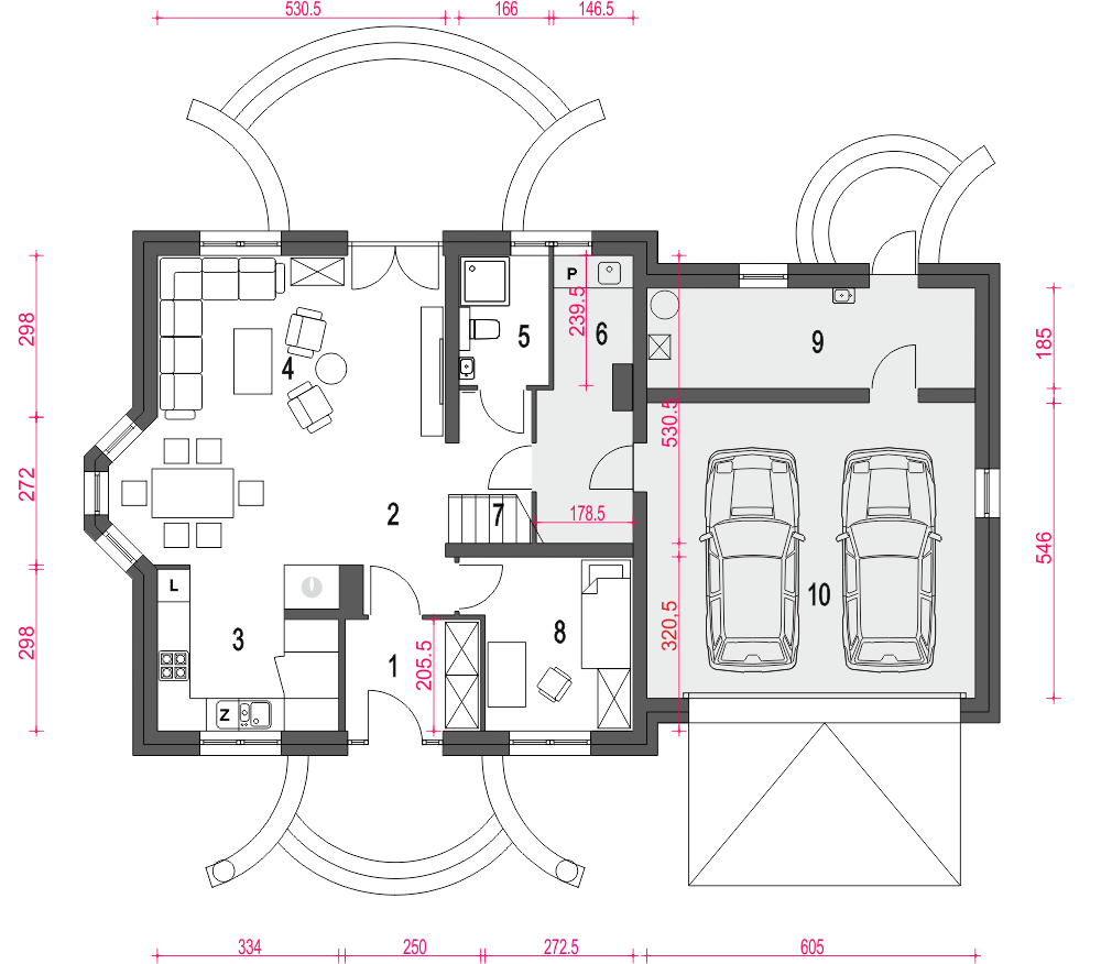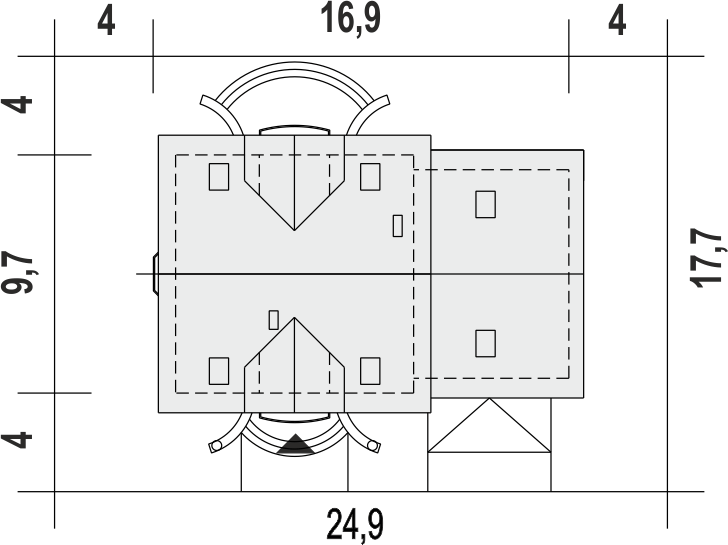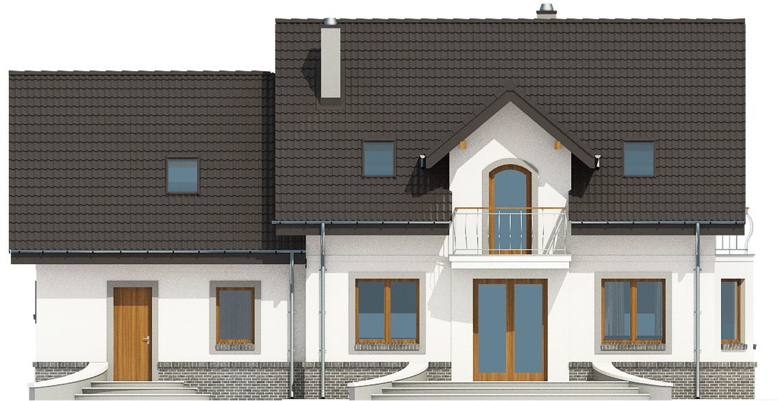 Graficzne opracowanie rzutów poglądowych widocznych na karcie projektu zostało wykonane przez Extradom.pl. Prezentowane przez Extradom.pl wizualizacje wykonane zostały przez autora projektu i należy poczytywać je jedynie za przykład i propozycję wykończenia, wizję architektoniczną autora projektu. Ostateczne wykończenie budynku może nastąpić na wiele sposobów. Szczegółowe rozwiązania zastosowane w oferowanej dokumentacji - w tym również ilość, lokalizacje i wygląd okien, drzwi, kominów - mogą w niewielkim stopniu różnić się od prezentowanej wizualizacji budynku.