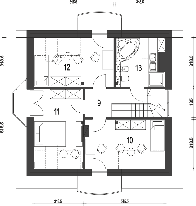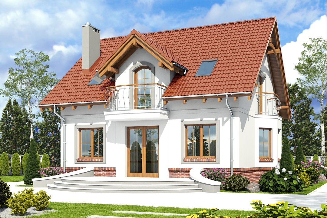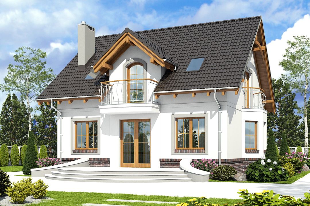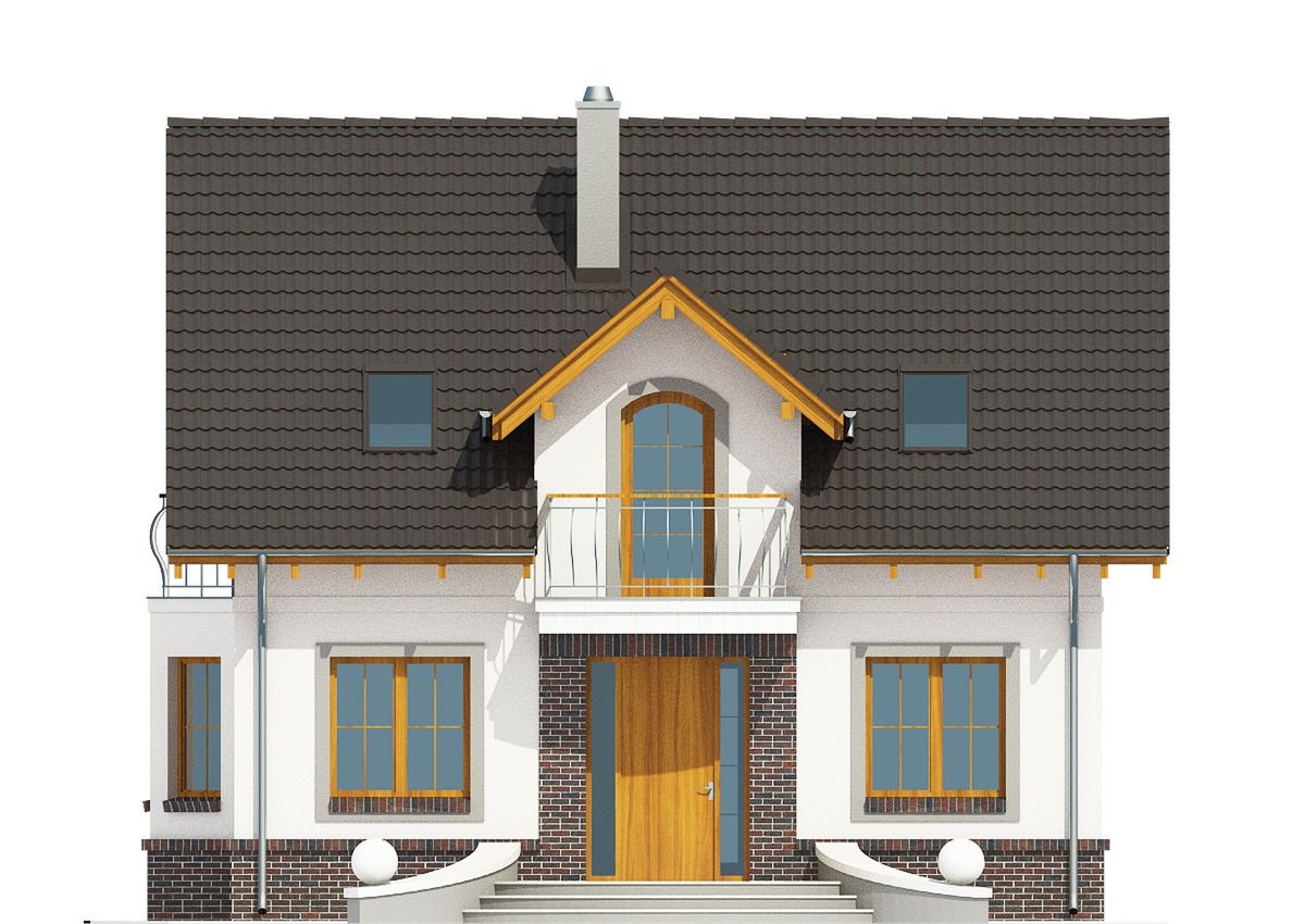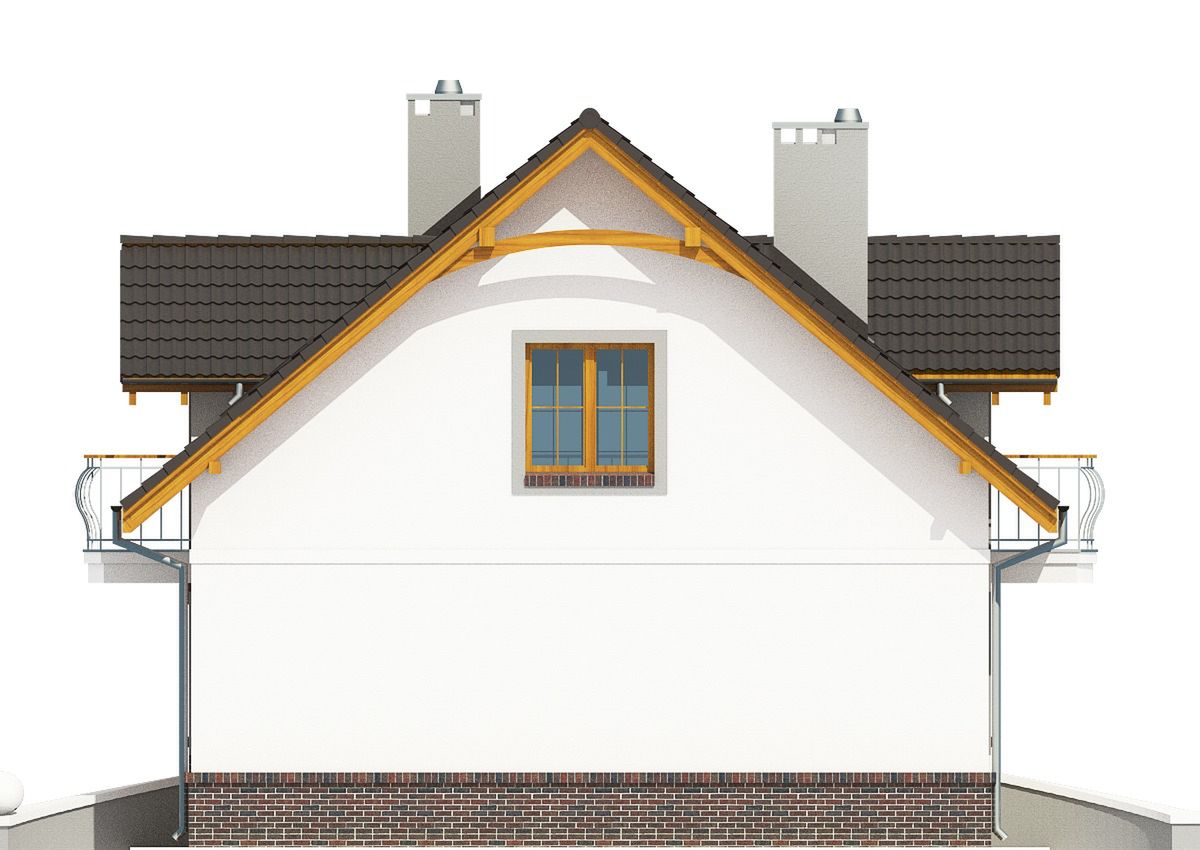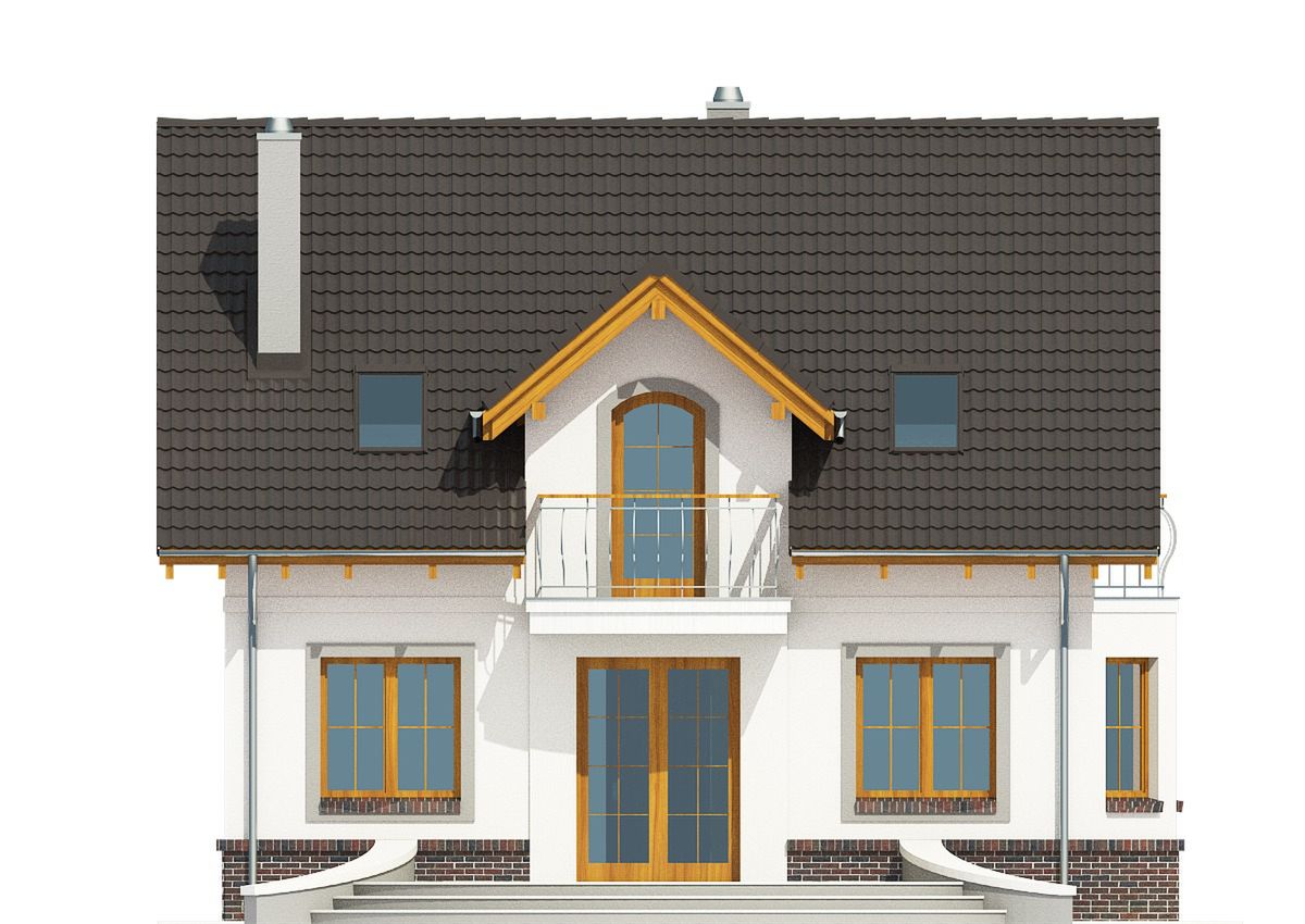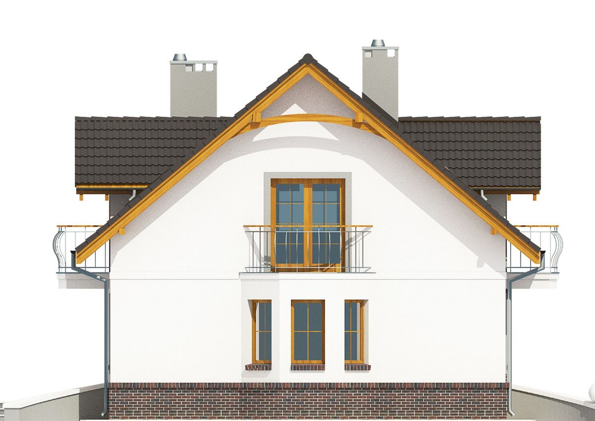 Graficzne opracowanie rzutów poglądowych widocznych na karcie projektu zostało wykonane przez Extradom.pl. Prezentowane przez Extradom.pl wizualizacje wykonane zostały przez autora projektu i należy poczytywać je jedynie za przykład i propozycję wykończenia, wizję architektoniczną autora projektu. Ostateczne wykończenie budynku może nastąpić na wiele sposobów. Szczegółowe rozwiązania zastosowane w oferowanej dokumentacji - w tym również ilość, lokalizacje i wygląd okien, drzwi, kominów - mogą w niewielkim stopniu różnić się od prezentowanej wizualizacji budynku.