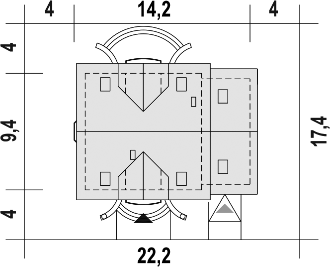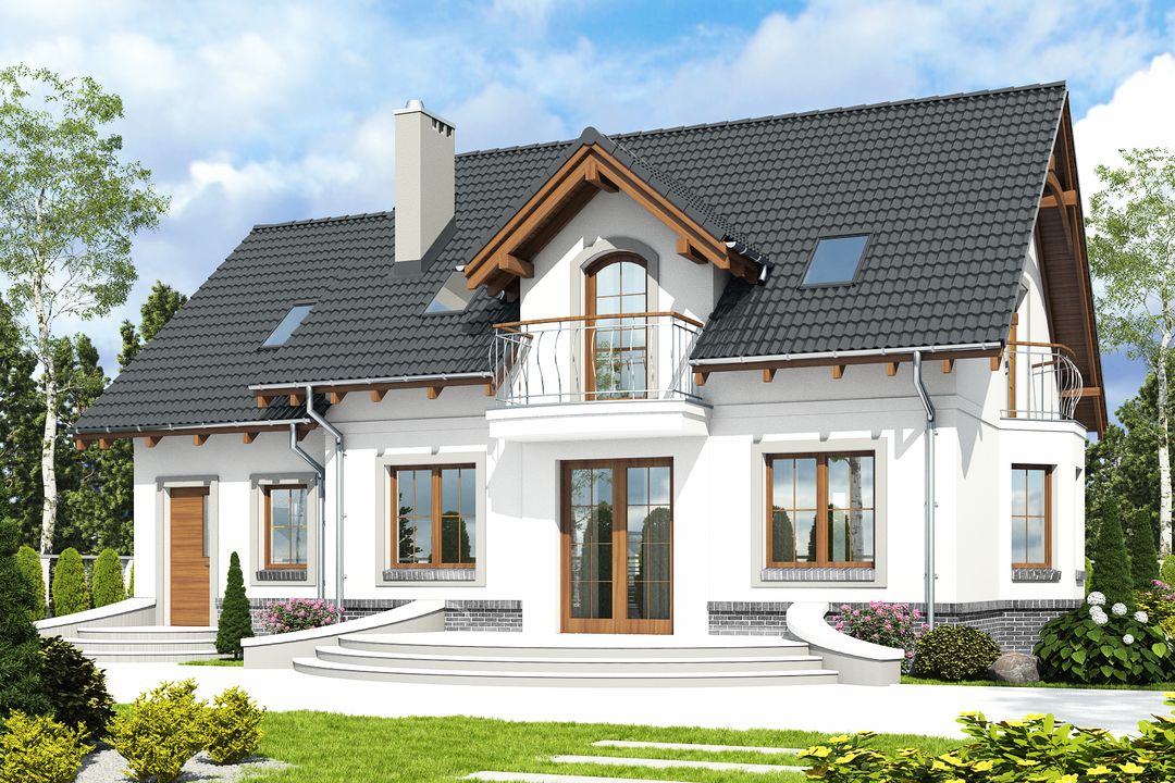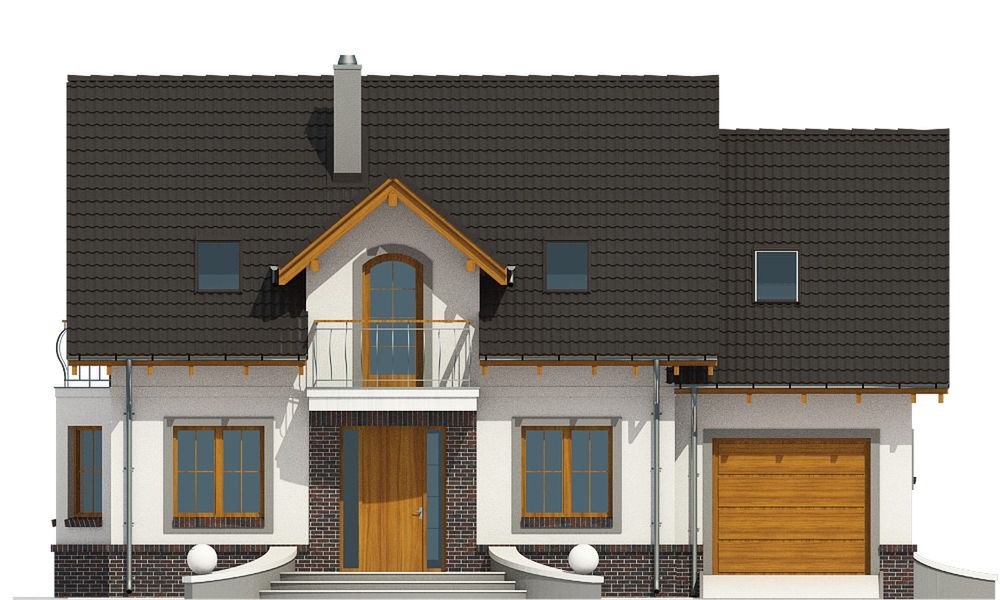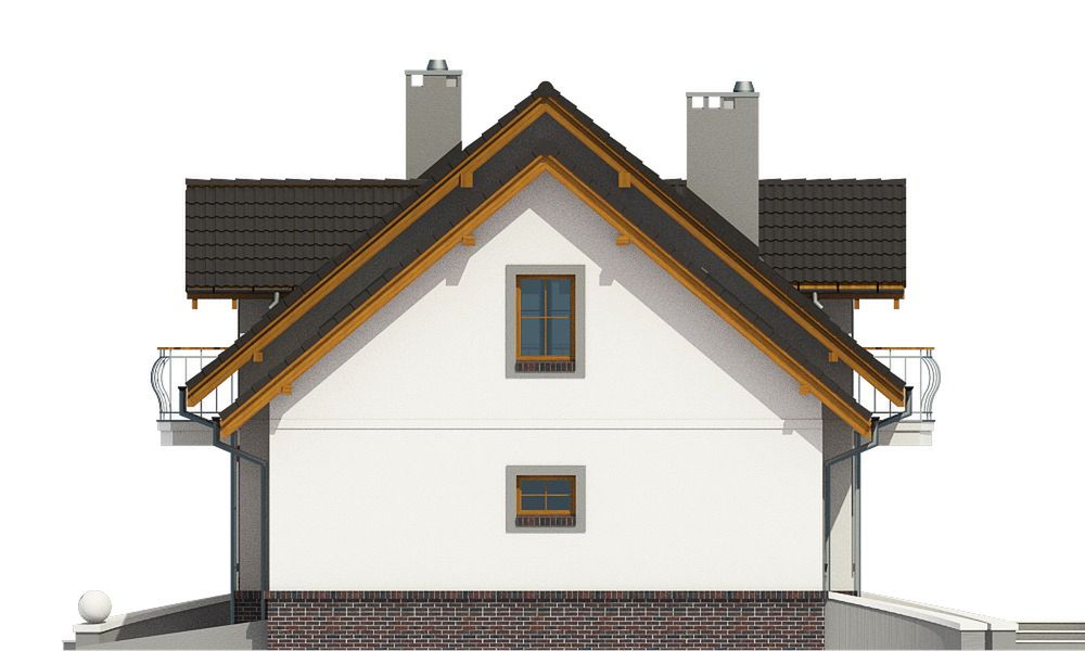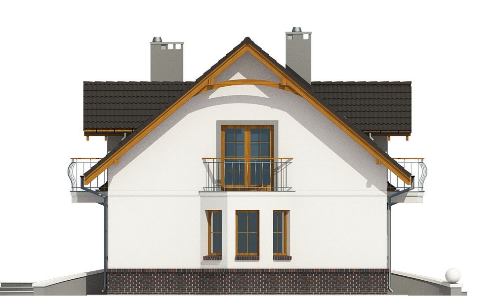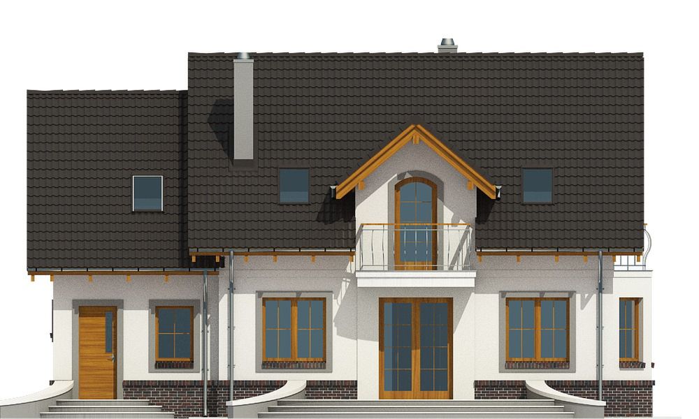 Graficzne opracowanie rzutów poglądowych widocznych na karcie projektu zostało wykonane przez Extradom.pl. Prezentowane przez Extradom.pl wizualizacje wykonane zostały przez autora projektu i należy poczytywać je jedynie za przykład i propozycję wykończenia, wizję architektoniczną autora projektu. Ostateczne wykończenie budynku może nastąpić na wiele sposobów. Szczegółowe rozwiązania zastosowane w oferowanej dokumentacji - w tym również ilość, lokalizacje i wygląd okien, drzwi, kominów - mogą w niewielkim stopniu różnić się od prezentowanej wizualizacji budynku.