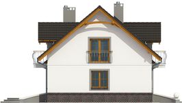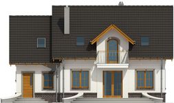 Graficzne opracowanie rzutów poglądowych widocznych na karcie projektu zostało wykonane przez Extradom.pl. Prezentowane przez Extradom.pl wizualizacje wykonane zostały przez autora projektu i należy poczytywać je jedynie za przykład i propozycję wykończenia, wizję architektoniczną autora projektu. Ostateczne wykończenie budynku może nastąpić na wiele sposobów. Szczegółowe rozwiązania zastosowane w oferowanej dokumentacji - w tym również ilość, lokalizacje i wygląd okien, drzwi, kominów - mogą w niewielkim stopniu różnić się od prezentowanej wizualizacji budynku.