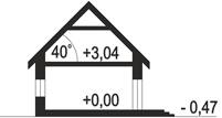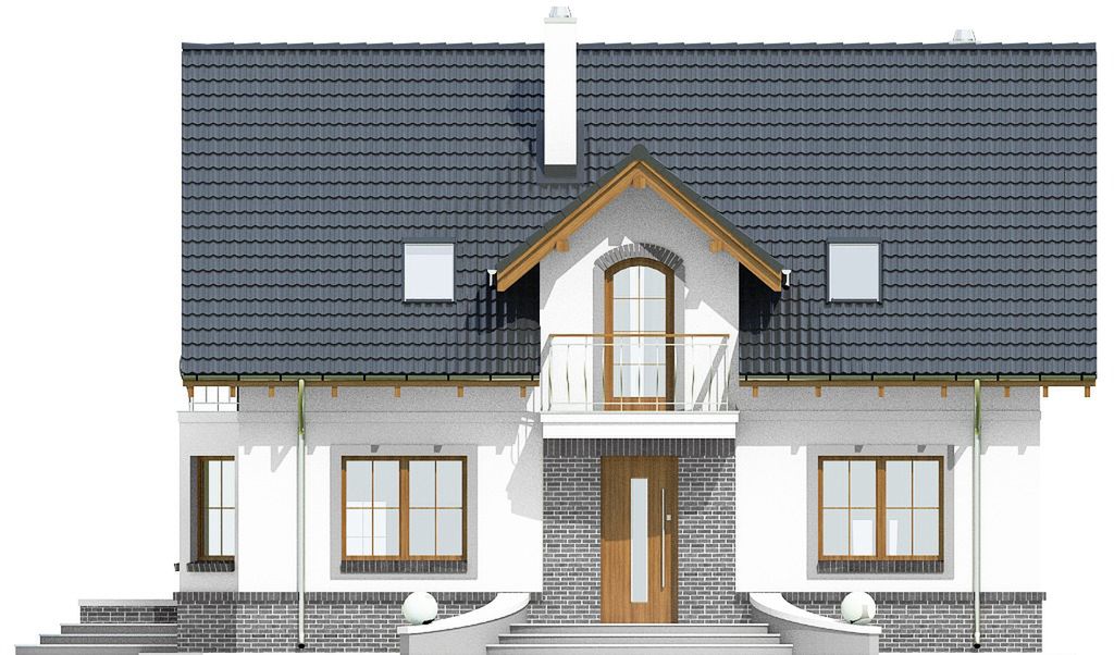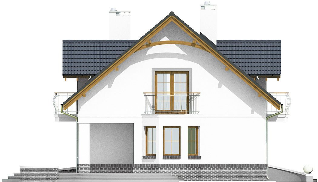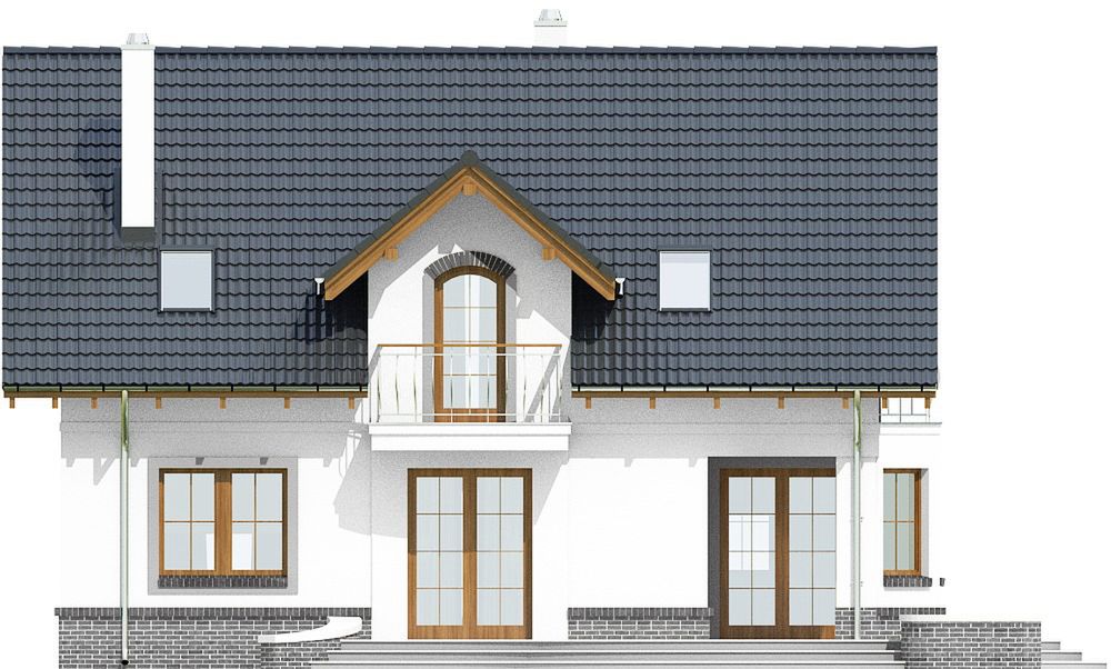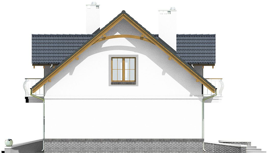 Graficzne opracowanie rzutów poglądowych widocznych na karcie projektu zostało wykonane przez Extradom.pl. Prezentowane przez Extradom.pl wizualizacje wykonane zostały przez autora projektu i należy poczytywać je jedynie za przykład i propozycję wykończenia, wizję architektoniczną autora projektu. Ostateczne wykończenie budynku może nastąpić na wiele sposobów. Szczegółowe rozwiązania zastosowane w oferowanej dokumentacji - w tym również ilość, lokalizacje i wygląd okien, drzwi, kominów - mogą w niewielkim stopniu różnić się od prezentowanej wizualizacji budynku.