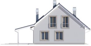 Graficzne opracowanie rzutów poglądowych widocznych na karcie projektu zostało wykonane przez Extradom.pl. Prezentowane przez Extradom.pl wizualizacje wykonane zostały przez autora projektu i należy poczytywać je jedynie za przykład i propozycję wykończenia, wizję architektoniczną autora projektu. Ostateczne wykończenie budynku może nastąpić na wiele sposobów. Szczegółowe rozwiązania zastosowane w oferowanej dokumentacji - w tym również ilość, lokalizacje i wygląd okien, drzwi, kominów - mogą w niewielkim stopniu różnić się od prezentowanej wizualizacji budynku.
