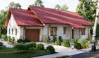 Graficzne opracowanie rzutów poglądowych widocznych na karcie projektu zostało wykonane przez Extradom.pl. Prezentowane przez Extradom.pl wizualizacje wykonane zostały przez autora projektu i należy poczytywać je jedynie za przykład i propozycję wykończenia, wizję architektoniczną autora projektu. Ostateczne wykończenie budynku może nastąpić na wiele sposobów. Szczegółowe rozwiązania zastosowane w oferowanej dokumentacji - w tym również ilość, lokalizacje i wygląd okien, drzwi, kominów - mogą w niewielkim stopniu różnić się od prezentowanej wizualizacji budynku.