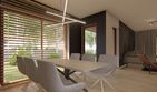 Ściany: bloczek z betonu komórkowego klasy M600 o grubości 24cm. Styropian EPS 70 o grubości 20cm, np. firmy Swisspor. Strop: w projekcie zaprojektowano sufit podwieszany na ruszcie aluminiowym z płyt g-k. Dach: czterospadowy, więźba drewniana prefabrykowana, nachylenie 30st., dachówka ceramiczna. Elewacje: tynk cienkowarstwowy, cokół z grafitowych płytek klinkierowych oraz elementy dekoracyjne elewacji ściennej z desek drewnianych i z betonu architektonicznego. Ogrzewanie: W projekcie zastosowano kocioł na paliwo gazowe. Istnieje możliwość zamiany kotła na inne paliwo na etapie adaptacji. Ogrzewanie podłogowe: Ogrzewanie podłogowe zaprojektowano w takich pomieszczeniach jak: korytarze, łazienki, kuchnia, salon. Wentylacja: W projekcie jako podstawową wentylację zaprojektowano wentylację grawitacyjną. Dodatkowo do projektu dołączamy gratis projekt wentylacji mechanicznej- rekuperacji. Na etapie adaptacji projektu należy wybrać jedną z dwóch opcji.