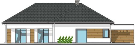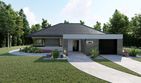 Graficzne opracowanie rzutów poglądowych widocznych na karcie projektu zostało wykonane przez Extradom.pl. Prezentowane przez Extradom.pl wizualizacje wykonane zostały przez autora projektu i należy poczytywać je jedynie za przykład i propozycję wykończenia, wizję architektoniczną autora projektu. Ostateczne wykończenie budynku może nastąpić na wiele sposobów. Szczegółowe rozwiązania zastosowane w oferowanej dokumentacji - w tym również ilość, lokalizacje i wygląd okien, drzwi, kominów - mogą w niewielkim stopniu różnić się od prezentowanej wizualizacji budynku.