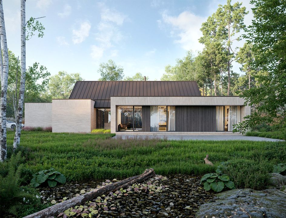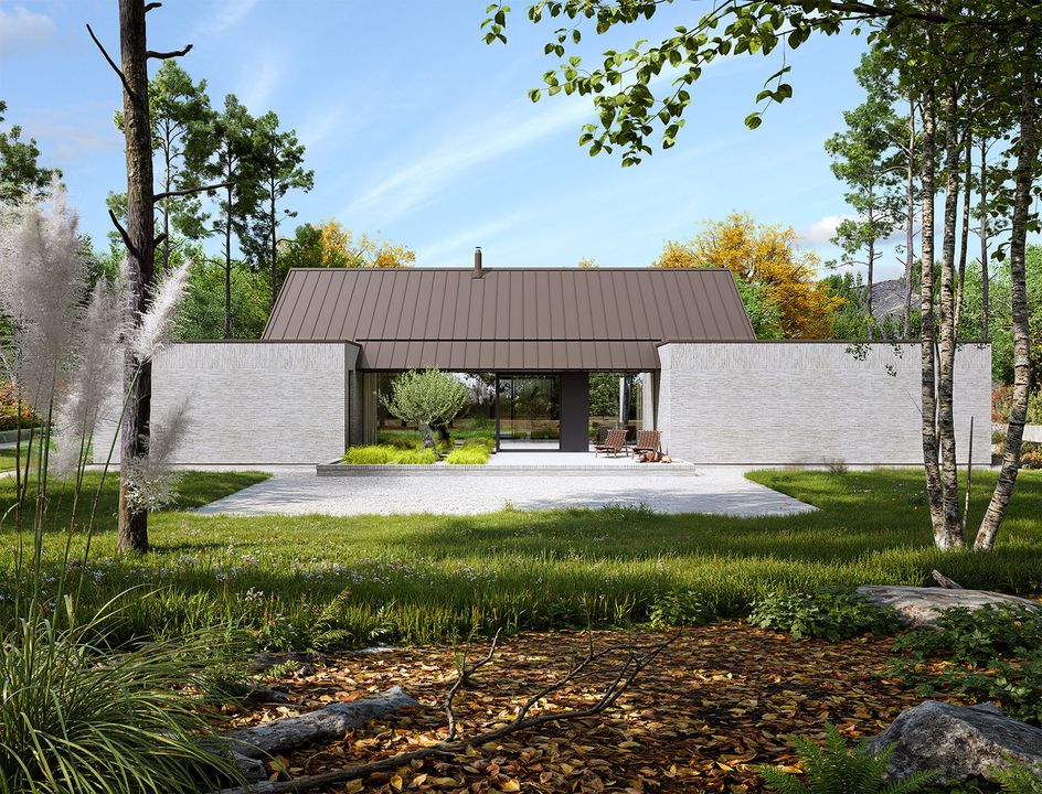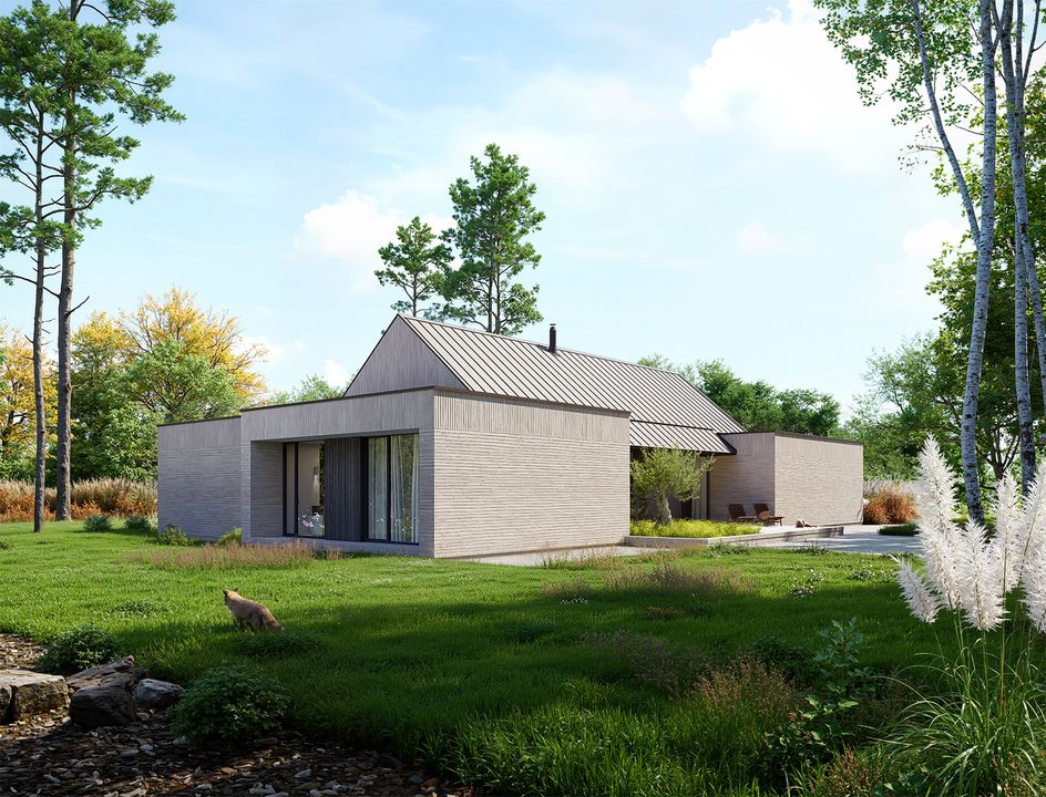 Graficzne opracowanie rzutów poglądowych widocznych na karcie projektu zostało wykonane przez Extradom.pl. Prezentowane przez Extradom.pl wizualizacje wykonane zostały przez autora projektu i należy poczytywać je jedynie za przykład i propozycję wykończenia, wizję architektoniczną autora projektu. Ostateczne wykończenie budynku może nastąpić na wiele sposobów. Szczegółowe rozwiązania zastosowane w oferowanej dokumentacji - w tym również ilość, lokalizacje i wygląd okien, drzwi, kominów - mogą w niewielkim stopniu różnić się od prezentowanej wizualizacji budynku.
