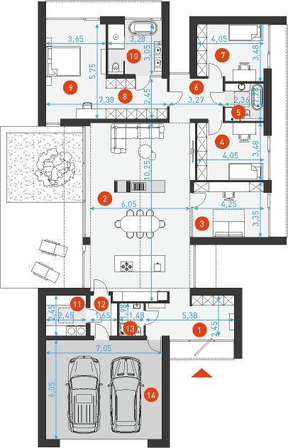 Projekt stanowi aktualną i pełną dokumentację zawierającą część architektoniczno - budowlaną, konstrukcyjną wykonawczą, instalacji wewnętrznych, elektrycznych i teletechnicznych, charakterystykę energetyczną oraz uprawnienia projektantów. Dokumentacja zabezpieczona jest specjalną plombą, której usunięcie uniemożliwi jej zwrot oraz wymianę. Zapraszamy do zamówienia przed zakupem rysunków szczegółowych projektu oraz analizy posiadanej działki w celu upewnienia się, że wybrany projekt domu idealnie na nią pasuje.