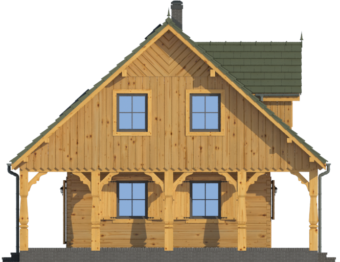 Wysokość ścianki kolankowej: 0.77 m. Strop: drewniany. Pokrycie dachu: dachówka ceramiczna. Ściany zewnętrzne: płazy drewniane + izolacja natryskowa Icynene. Ściany wewnętrzne: płazy drewniane. Typ ogrzewania: elektryczne.