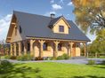 Graficzne opracowanie rzutów poglądowych widocznych na karcie projektu zostało wykonane przez Extradom.pl. Prezentowane przez Extradom.pl wizualizacje wykonane zostały przez autora projektu i należy poczytywać je jedynie za przykład i propozycję wykończenia, wizję architektoniczną autora projektu. Ostateczne wykończenie budynku może nastąpić na wiele sposobów. Szczegółowe rozwiązania zastosowane w oferowanej dokumentacji - w tym również ilość, lokalizacje i wygląd okien, drzwi, kominów - mogą w niewielkim stopniu różnić się od prezentowanej wizualizacji budynku.