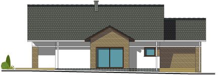 Graficzne opracowanie rzutów poglądowych widocznych na karcie projektu zostało wykonane przez Extradom.pl. Prezentowane przez Extradom.pl wizualizacje wykonane zostały przez autora projektu i należy poczytywać je jedynie za przykład i propozycję wykończenia, wizję architektoniczną autora projektu. Ostateczne wykończenie budynku może nastąpić na wiele sposobów. Szczegółowe rozwiązania zastosowane w oferowanej dokumentacji - w tym również ilość, lokalizacje i wygląd okien, drzwi, kominów - mogą w niewielkim stopniu różnić się od prezentowanej wizualizacji budynku.