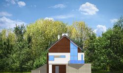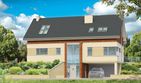 Graficzne opracowanie rzutów poglądowych widocznych na karcie projektu zostało wykonane przez Extradom.pl. Prezentowane przez Extradom.pl wizualizacje wykonane zostały przez autora projektu i należy poczytywać je jedynie za przykład i propozycję wykończenia, wizję architektoniczną autora projektu. Ostateczne wykończenie budynku może nastąpić na wiele sposobów. Szczegółowe rozwiązania zastosowane w oferowanej dokumentacji - w tym również ilość, lokalizacje i wygląd okien, drzwi, kominów - mogą w niewielkim stopniu różnić się od prezentowanej wizualizacji budynku.