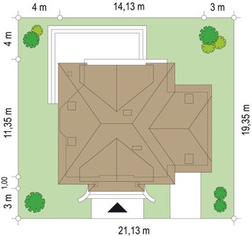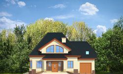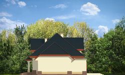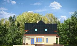 Graficzne opracowanie rzutów poglądowych widocznych na karcie projektu zostało wykonane przez Extradom.pl. Prezentowane przez Extradom.pl wizualizacje wykonane zostały przez autora projektu i należy poczytywać je jedynie za przykład i propozycję wykończenia, wizję architektoniczną autora projektu. Ostateczne wykończenie budynku może nastąpić na wiele sposobów. Szczegółowe rozwiązania zastosowane w oferowanej dokumentacji - w tym również ilość, lokalizacje i wygląd okien, drzwi, kominów - mogą w niewielkim stopniu różnić się od prezentowanej wizualizacji budynku.