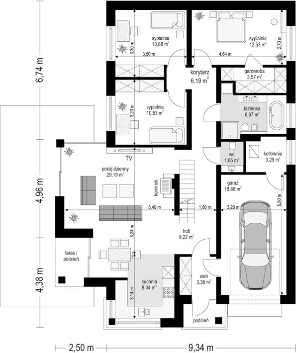 PROJEKT Z BUDOWĄ Istnieje możliwość zaadaptowania tego projektu do technologii prefabrykowanej/modułowej i budowy nawet w 6 miesięcy ze stałym kosztem budowy