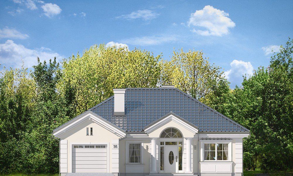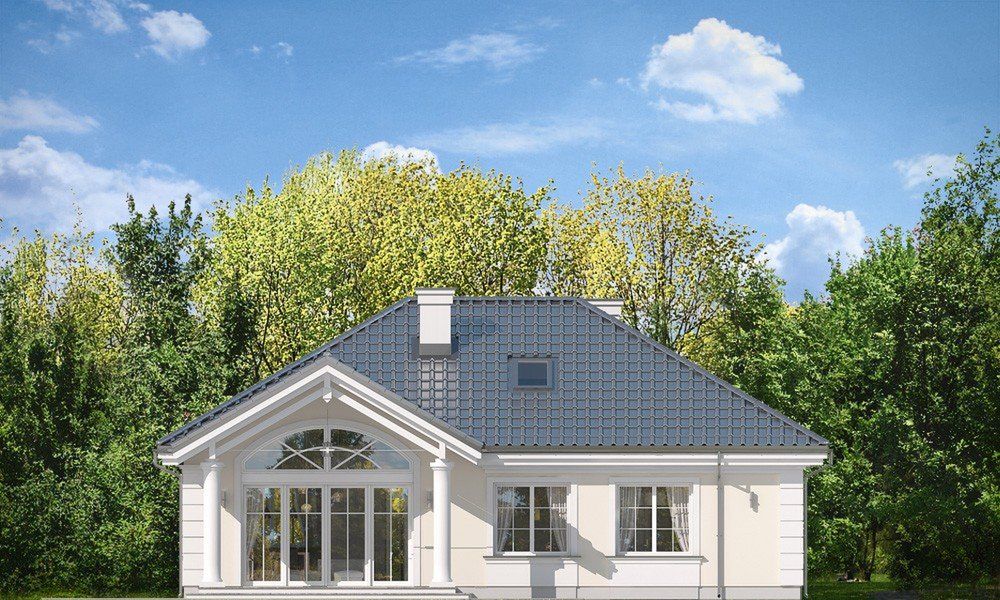 Graficzne opracowanie rzutów poglądowych widocznych na karcie projektu zostało wykonane przez Extradom.pl. Prezentowane przez Extradom.pl wizualizacje wykonane zostały przez autora projektu i należy poczytywać je jedynie za przykład i propozycję wykończenia, wizję architektoniczną autora projektu. Ostateczne wykończenie budynku może nastąpić na wiele sposobów. Szczegółowe rozwiązania zastosowane w oferowanej dokumentacji - w tym również ilość, lokalizacje i wygląd okien, drzwi, kominów - mogą w niewielkim stopniu różnić się od prezentowanej wizualizacji budynku.