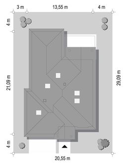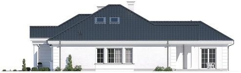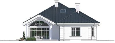 Graficzne opracowanie rzutów poglądowych widocznych na karcie projektu zostało wykonane przez Extradom.pl. Prezentowane przez Extradom.pl wizualizacje wykonane zostały przez autora projektu i należy poczytywać je jedynie za przykład i propozycję wykończenia, wizję architektoniczną autora projektu. Ostateczne wykończenie budynku może nastąpić na wiele sposobów. Szczegółowe rozwiązania zastosowane w oferowanej dokumentacji - w tym również ilość, lokalizacje i wygląd okien, drzwi, kominów - mogą w niewielkim stopniu różnić się od prezentowanej wizualizacji budynku.