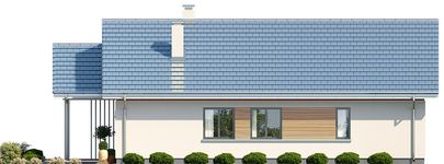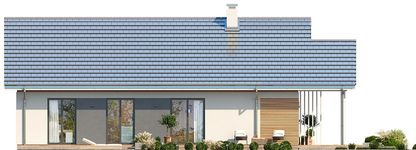 Graficzne opracowanie rzutów poglądowych widocznych na karcie projektu zostało wykonane przez Extradom.pl. Prezentowane przez Extradom.pl wizualizacje wykonane zostały przez autora projektu i należy poczytywać je jedynie za przykład i propozycję wykończenia, wizję architektoniczną autora projektu. Ostateczne wykończenie budynku może nastąpić na wiele sposobów. Szczegółowe rozwiązania zastosowane w oferowanej dokumentacji - w tym również ilość, lokalizacje i wygląd okien, drzwi, kominów - mogą w niewielkim stopniu różnić się od prezentowanej wizualizacji budynku.