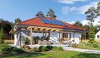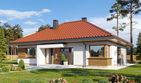 Graficzne opracowanie rzutów poglądowych widocznych na karcie projektu zostało wykonane przez Extradom.pl. Prezentowane przez Extradom.pl wizualizacje wykonane zostały przez autora projektu i należy poczytywać je jedynie za przykład i propozycję wykończenia, wizję architektoniczną autora projektu. Ostateczne wykończenie budynku może nastąpić na wiele sposobów. Szczegółowe rozwiązania zastosowane w oferowanej dokumentacji - w tym również ilość, lokalizacje i wygląd okien, drzwi, kominów - mogą w niewielkim stopniu różnić się od prezentowanej wizualizacji budynku.