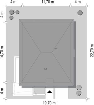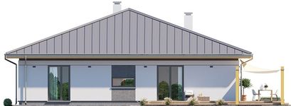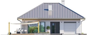 Graficzne opracowanie rzutów poglądowych widocznych na karcie projektu zostało wykonane przez Extradom.pl. Prezentowane przez Extradom.pl wizualizacje wykonane zostały przez autora projektu i należy poczytywać je jedynie za przykład i propozycję wykończenia, wizję architektoniczną autora projektu. Ostateczne wykończenie budynku może nastąpić na wiele sposobów. Szczegółowe rozwiązania zastosowane w oferowanej dokumentacji - w tym również ilość, lokalizacje i wygląd okien, drzwi, kominów - mogą w niewielkim stopniu różnić się od prezentowanej wizualizacji budynku.