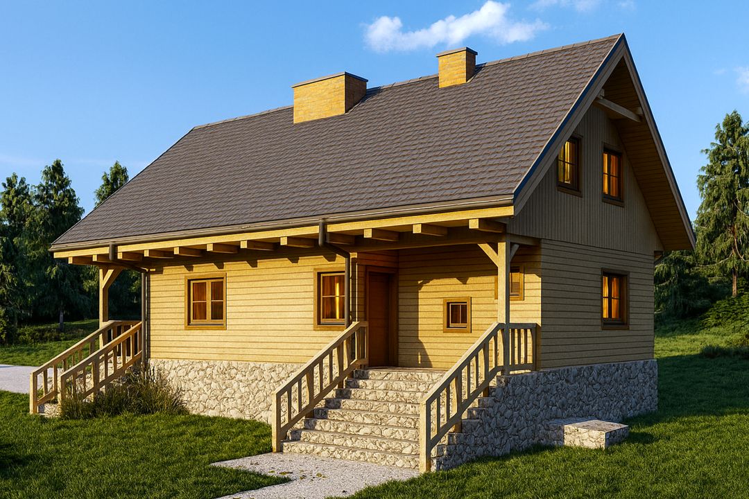 Graficzne opracowanie rzutów poglądowych widocznych na karcie projektu zostało wykonane przez Extradom.pl. Prezentowane przez Extradom.pl wizualizacje wykonane zostały przez autora projektu i należy poczytywać je jedynie za przykład i propozycję wykończenia, wizję architektoniczną autora projektu. Ostateczne wykończenie budynku może nastąpić na wiele sposobów. Szczegółowe rozwiązania zastosowane w oferowanej dokumentacji - w tym również ilość, lokalizacje i wygląd okien, drzwi, kominów - mogą w niewielkim stopniu różnić się od prezentowanej wizualizacji budynku.