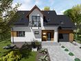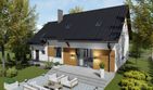 Graficzne opracowanie rzutów poglądowych widocznych na karcie projektu zostało wykonane przez Extradom.pl. Prezentowane przez Extradom.pl wizualizacje wykonane zostały przez autora projektu i należy poczytywać je jedynie za przykład i propozycję wykończenia, wizję architektoniczną autora projektu. Ostateczne wykończenie budynku może nastąpić na wiele sposobów. Szczegółowe rozwiązania zastosowane w oferowanej dokumentacji - w tym również ilość, lokalizacje i wygląd okien, drzwi, kominów - mogą w niewielkim stopniu różnić się od prezentowanej wizualizacji budynku.