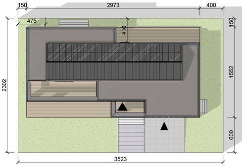 Graficzne opracowanie rzutów poglądowych widocznych na karcie projektu zostało wykonane przez Extradom.pl. Prezentowane przez Extradom.pl wizualizacje wykonane zostały przez autora projektu i należy poczytywać je jedynie za przykład i propozycję wykończenia, wizję architektoniczną autora projektu. Ostateczne wykończenie budynku może nastąpić na wiele sposobów. Szczegółowe rozwiązania zastosowane w oferowanej dokumentacji - w tym również ilość, lokalizacje i wygląd okien, drzwi, kominów - mogą w niewielkim stopniu różnić się od prezentowanej wizualizacji budynku.