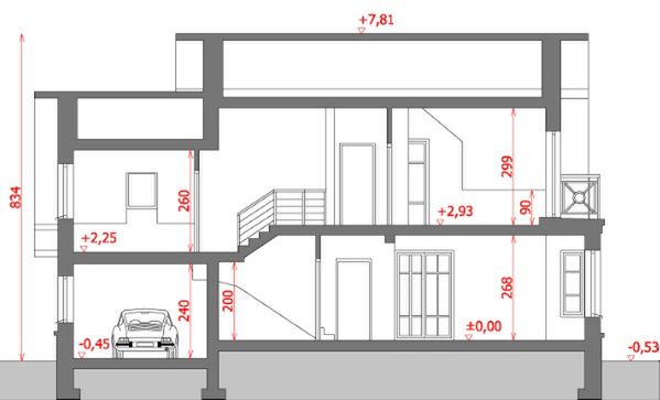 Ściany: pustak ceramiczny o gr. 25 cm, styropian 14 cm. Strop: płyta żelbetowa. Schody: żelbetowe. Pokrycie dachu: dachówka ceramiczna.